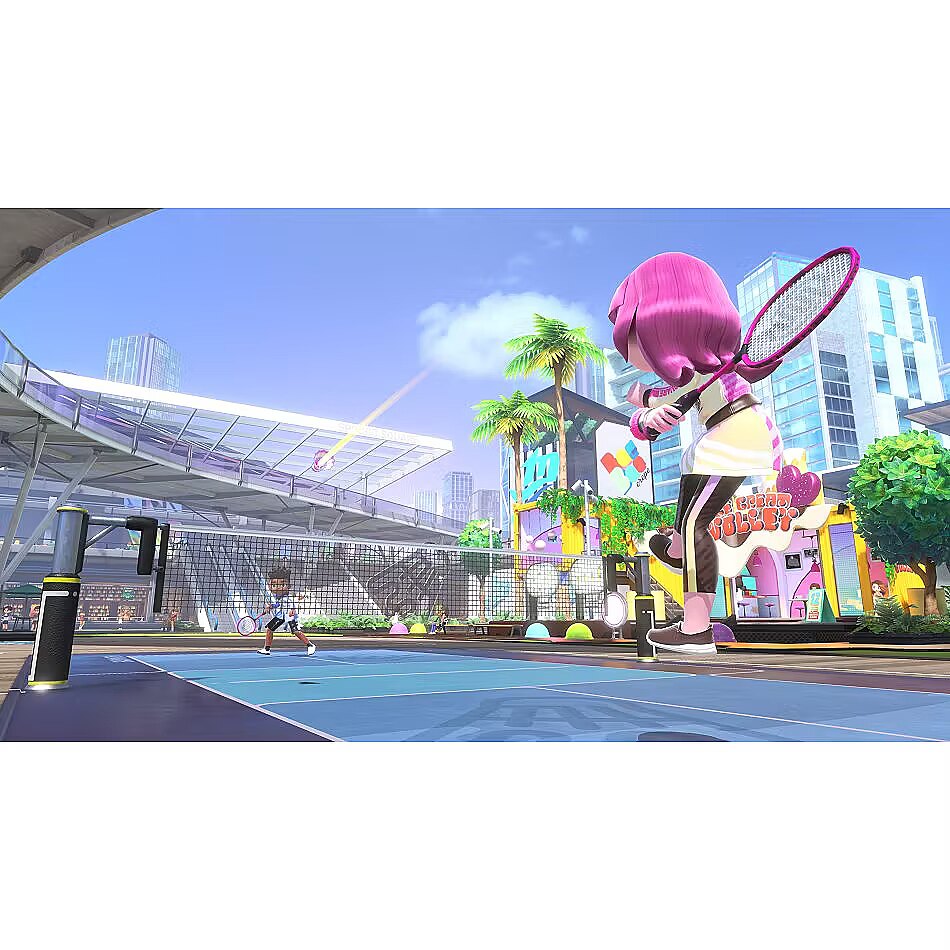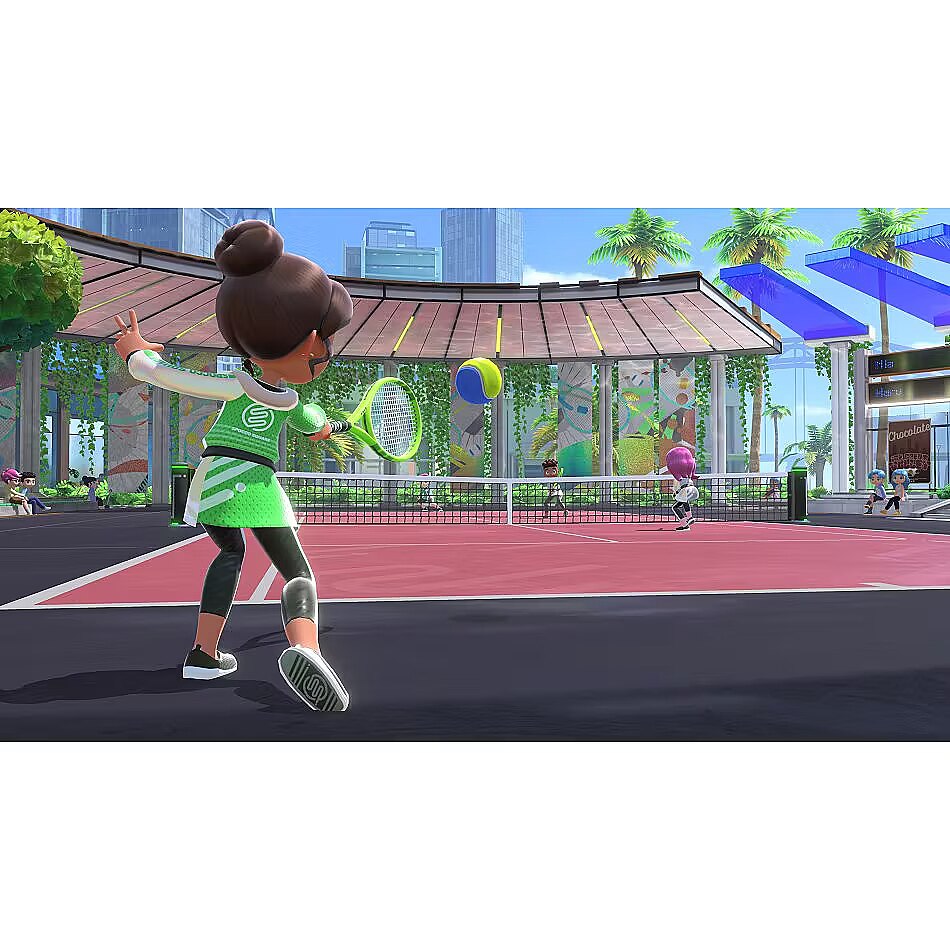 LongDesc - Swing, kick and spike your way to victory with Nintendo Switch Sports, a collection of sports for Nintendo Switch that puts you right into the action!Compete in six sports, including Volleyball, Football and Bowling, with real-world movements that model your actions in the game.Tennis: rally by gently swinging the Joy-Con controller at the right time.Bowling: roll the ball straight ahead, or give it a little curve.Chambara: Knock your opponent off the platform while attacking and defending.Football: Use a gigantic ball to make dynamic plays. Enjoy matches with Joy-Con controllers to shoot and perform Diving Headers. By attaching a Joy-Con controller to the Leg Strap accessory included with the physical version of Nintendo Switch Sports (also available separately), you can play Shoot-out mode with intuitive kicking motions.Badminton: Control your shots left and right while keeping the shuttlecock in the air. Swing left and right while keeping the shuttlecock in the air. Unleash powerful smash shots to gain the upper hand!Volleyball: Use a Joy-Con controller to serve, bump, set, and spike the ball.Play together in person or online with family and friends, or challenge players around the world. In addition to customising your avatar with items collected from playing online, there are all kinds of ways to have fun, such as testing your ability in the Pro League where you can try to increase your rank by winning in the different sports.Future updatesTwo free software updates are planned for release in summer and autumn. The first update arriving this summer will allow you to play football matches with a Joy-Con controller and the Leg Strap accessory. The second update coming this autumn will add Golf as a new sport to the game.