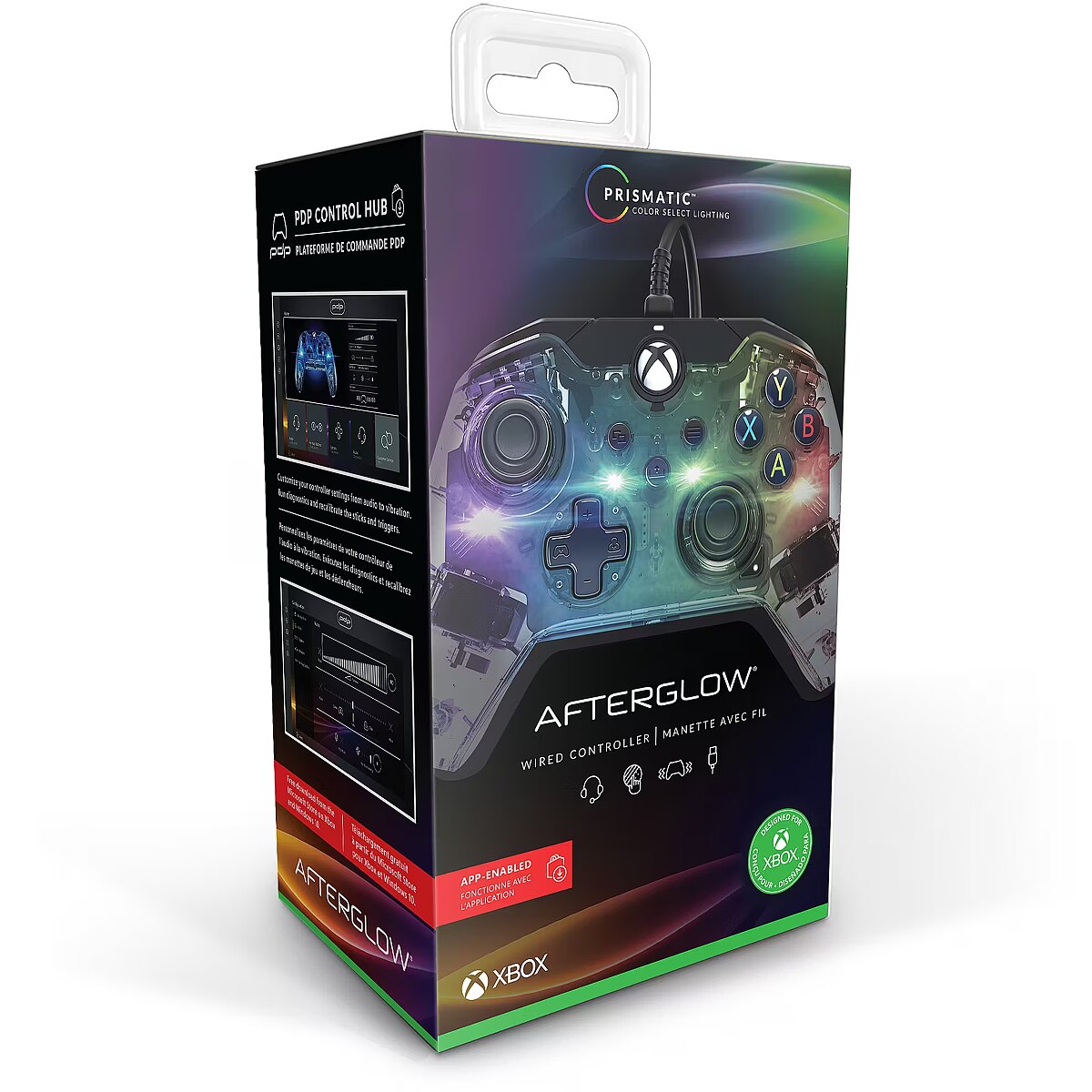 LongDesc - Light up your competition with the Afterglow Wired Controller for Xbox! With our signature Prismatic lighting and four different settings you can change the mode to match your mood.Simply adjust your game and chat audio using the audio controls located on the D-pad, so you never miss a moment. Communicate with your team using the built-in 3.5mm audio jack or mute your mic by double tapping the ""Function"" button. Get comfy on the couch with the included 10-foot detachable cable and share your captured images and videos easily with the dedicated share button. With the free PDP Control Hub App you can remap buttons, reconfigure triggers, adjust dead zones, and more to fit the way you play.The Afterglow Wired Controller works on Xbox Series X|S, Xbox One, and Windows 10 and is an officially licensed product.