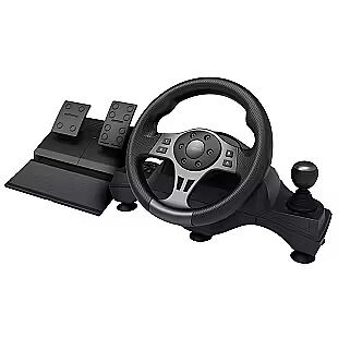 LongDesc - Ready to raceTake on racing games like never before with the Movi Racing Wheel. Suitable for PC and console gaming (Xbox Series X/S, Switch and PS4), this wheel gives you that real racing experience from the comfort of your gaming room!Shift into actionDrive with style and substance thanks to the Movi’s comfortable rubberised, textured wheel that puts you right in the front seat. What’s more, paddle shifters, a sequential gear stick, and a reverse gear bring the thrill of real racing right to you.Feel the turnOffering up to a 270° rotation range and 900° virtual angle (2.5 wheel turns), this wheel is perfect for everything from racing games to truck, farm and bus simulators. It even has vibration feedback for your most immersive racing experience yet.Locked and loadedRace with ultimate confidence. The Movi’s included clamps, suction cups and anti-skid pedal base keep this racing wheel in place all day long, no matter how intense the action gets.