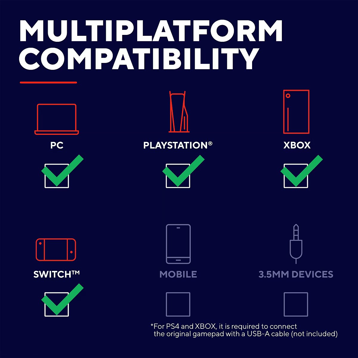 Input device - Gaming platforms supported - Nintendo Switch, PlayStation 4, Xbox One S, Xbox One X, Xbox Series S, Xbox Series X