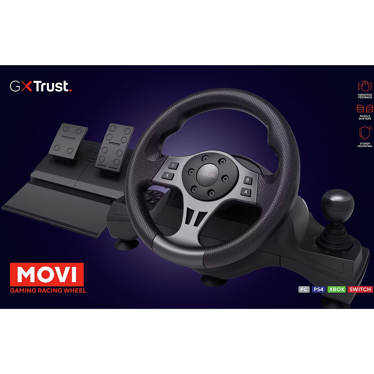 productName - Trust GXT 289 Movi Black USB Steering wheel + Pedals Nintendo Switch, PlayStation 4, Xbox One S, Xbox One X, Xbox Series S, Xbox Series X