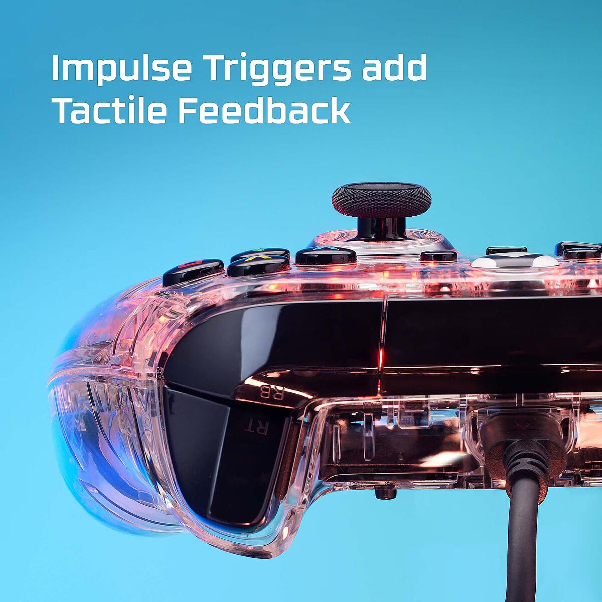 The HyperX Clutch Gladiate RGB Gaming Controller is built for Xbox players that want a precision controller with customizable controls. This officially licensed wired Xbox[1] controller features dual trigger locks and remappable rear buttons so you can take control your way. Powerful dual rumble motors and impulse triggers take immersion and force feedback to the next level. Showcase your style with 3 different effects and 7 different colors of lighting customization. It also features a 3.5mm stereo jack to connect your favorite wired headset.