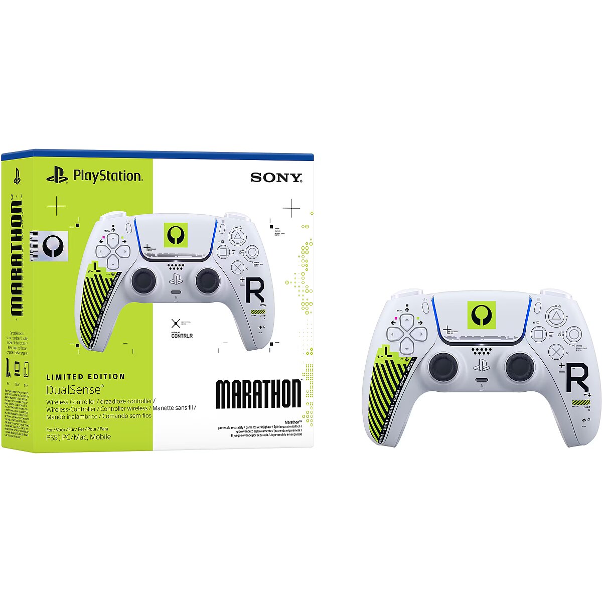 LongSummaryDescription - Sony DualSense. Device type: Gamepad, Gaming platforms supported: PlayStation 5, Gaming control function buttons: D-pad, Menu button, Microphone mute button. Connectivity technology: Wired & Wireless, Device interface: Bluetooth/USB, USB connector type: USB Type-C. Product colour: Green, White. Power source: Battery. Width: 188 mm, Depth: 69 mm, Height: 189 mm