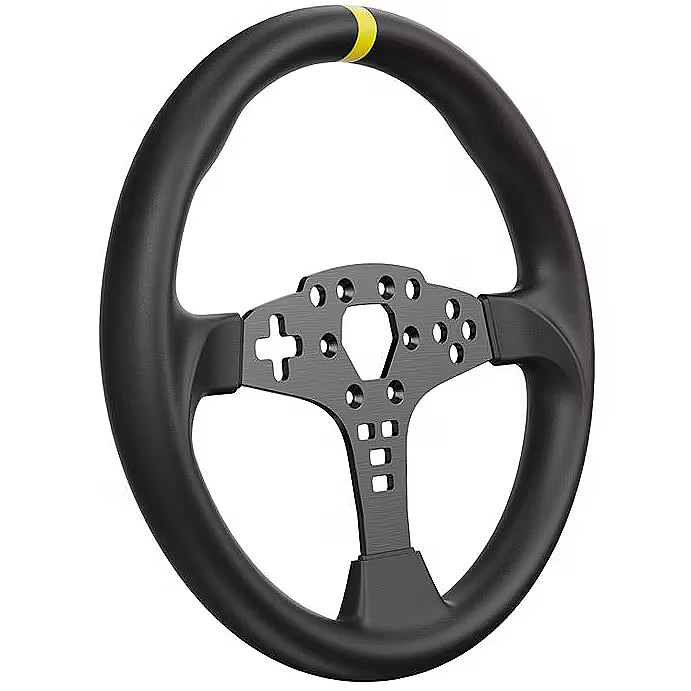 LongDesc - 12-inch Round Wheel ModThis round wheel mod has a diameter of 12 inches or 305mm, which is 25mm larger than the original ES wheel. The increase in size brings the wheel closer to the dimensions of a real car, providing a more realistic driving experience. This modification is particularly great for drifting enthusiasts!Ergonomic DesignThe grips located at the 3 o'clock and 9 o'clock positions have been thoughtfully designed without any stitching in order to maximize the sensation of the hand while preventing any discomfort that might arise from friction between the thumbs and stitches.Microfiber Leather GripsThe grips utilize microfiber leather and are crafted with exquisite hand-wrapping techniques.Aluminum Wheel RimUsing aviation-grade aluminum alloy, the wheel rim mod is durable and rigid.Lightweight DesignThe wheel rim mod has a remarkably low weight of 850g and weighs about 1.4kg with the button box. This low weight reduces its moment of inertia, improving its responsiveness and ability to reproduce road details.Shifter Paddle Extension BlockWe've included shifter paddle extension blocks in the package to ensure a comfortable driving experience with the larger wheel rim mod. You won't have to worry about the extended distance between the wheel rim and your hands.