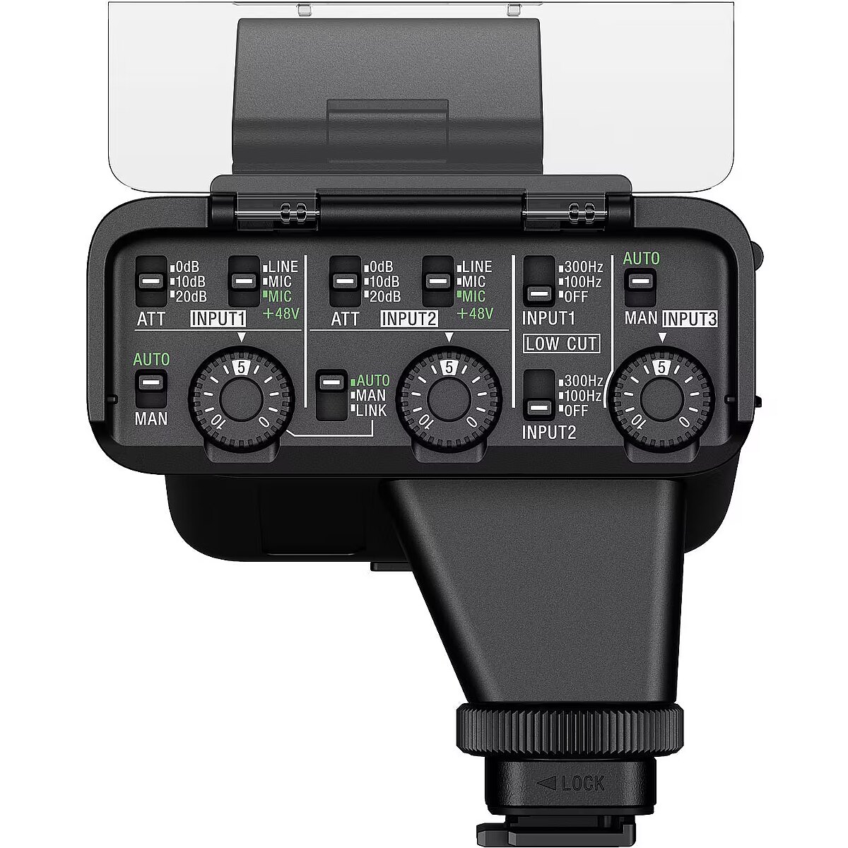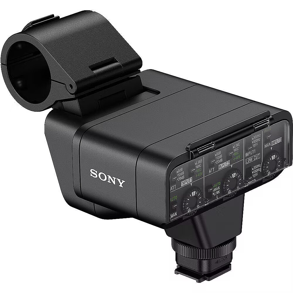 LongDesc - Great sound with low noiseWhen connected via the Multi Interface Shoe of a compatible camera that features a built-in digital audio interface, the audio signal is directly transferred to the camera in digital form so that no degradation can occur. A simple switch also provides compatibility with a wide range of cameras using an analog interface.Versatile connectivityTwo XLR/TRS combo jacks and one 3.5-mm stereo mini microphone jack are provided for input. The XLR/TRS combo jacks are switchable for line input, microphone input, or microphone input with 48 V phantom power.Flexible setupA high degree of flexibility is provided for use with professional rigs and camera cages. Audio extension cables are supplied, allowing the location of the XLR adaptor on your rig to be adjusted as required.Cable-free connectionSimply clip the XLR adaptor into the Multi Interface Shoe on a compatible camera for direct power and audio connections without the need for extra cables or batteries. Sony's Multi Interface Shoe offers intelligent connectivity and control for a variety of accessories, providing maximum flexibility and mobility for α system shooting.Mechanical noise suppressionAn advanced shock and vibration suppressing design effectively minimizes low-frequency handling noise which can degrade audio quality. The option for direct on-camera mounting, without additional connecting cables, further reduces the risk of handling noise ruining your audio capture.Comprehensive controlComprehensive controllability at the recording stage can greatly facilitate the post processing workflow. Record level (AUTO/MANUAL), record level link (INPUT 1 – INPUT 2), attenuator, and low-cut filter (100/300 Hz) controls are provided.Super-directional shotgun microphone includedA super-directional monaural microphone (ECM-XM1) and wind-noise-reducing fur-type wind screen are supplied.