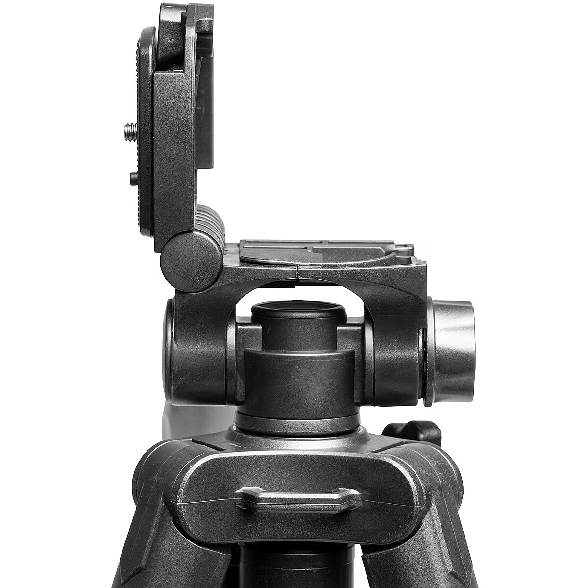 The 3-way head allows you to quickly and conveniently change the shooting angle, and the convenient control lever makes moving the tripod head particularly smooth. A built-in level ensures that the tripod is always perfectly balanced. In addition, the quick-mount plate allows the camera to be quickly and easily attached to the tripod. Portable design