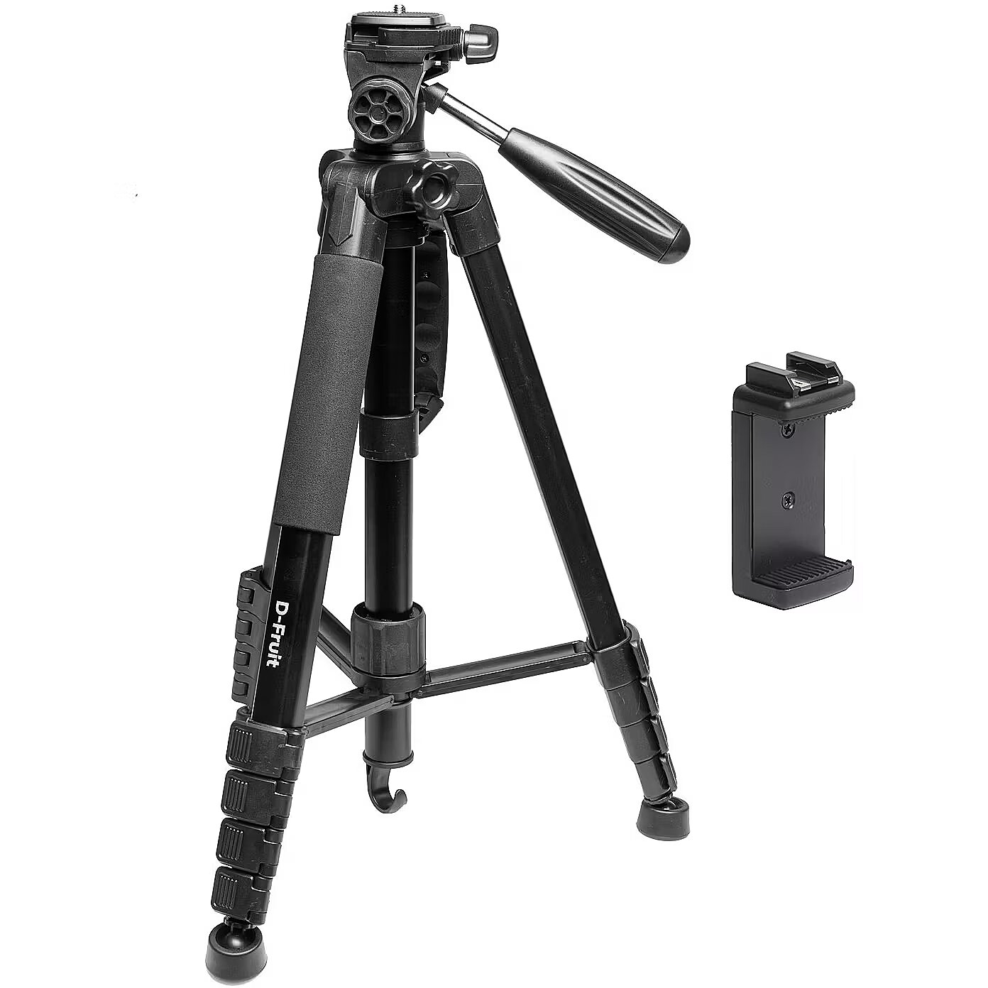 description_en - The D-Fruit 265 tripod with a built-in monopod offers the perfect balance between functionality, comfort and durability. The set includes a universal smartphone holder. The adapter has a cold shoe and two 1/4" threads that allow you to attach the phone to the tripod horizontally or vertically. The holder is suitable for use with phones with a width of 58–89 mm. Strong and stable