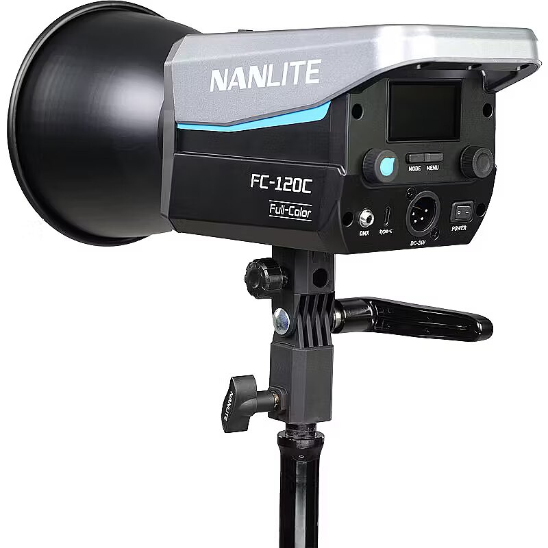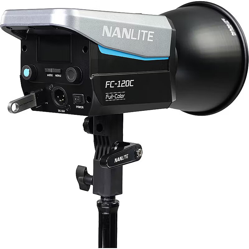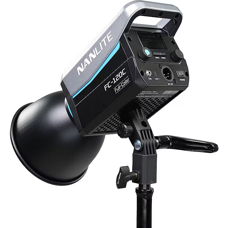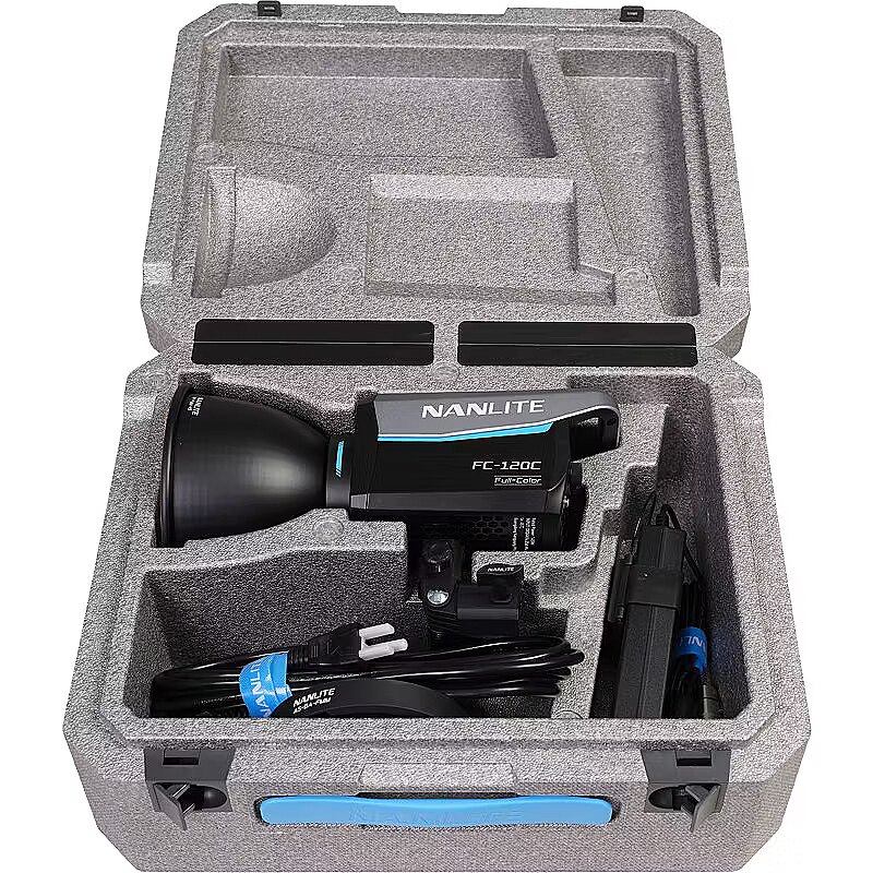 description_en - The Nanlite FC-120C is a surprisingly compact and lightweight LED spotlight that provides full RGB color and a wide CCT range of 2700K–7500K, and even though it's small and light, it cranks out 12850 lux, 1193 fc @1M 5600K with included reflector. FC-120C runs on batteries, powerbanks, or AC and delivers highly accurate light and a versatile array of control methods: onboard, Bluetooth, 2.4G, and DMX/RDM. Creators always want their lights to be as bright as possible while still being small and easy to hide behind in-frame objects, and also be affordable. The FC-120C fills this role perfectly. It's easy to use for complete beginners and also provides advanced features. A latching hard-foam case is included that holds the FC-120C, AC power adapter, 45° reflector, and Bowens-Mount adapter. Value, color, and power