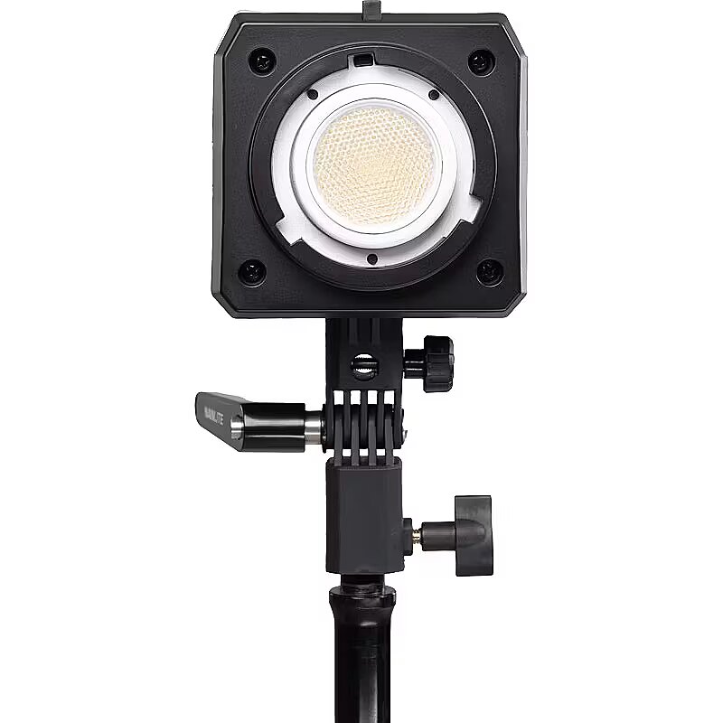 One of the reasons the FC-120C can be so compact is that it has the FM Mount. The nicely constructed 45° Reflector utilizes this mount, and provides smooth, even light. There are many compact light modifiers available for FM Mount that are also lightweight, like the FL-11 Fresnel, FMM softboxes, and PJ-FMM Projection Attachments (all sold separately). The included Bowens adapter opens up a world of light-modifier compatibility. There's even an integrated umbrella mount. Hollywood connections