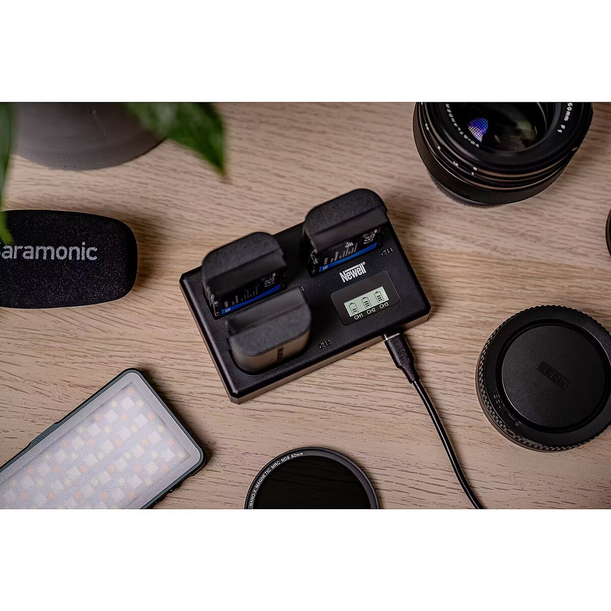Newell TT-USB-C on kolmekanaliline laadija, mis on mõeldud fotograafidele ja videograafidele, kes tihti välitingimustes töötavad. Seadme kompaktne mõõt (10,6 × 6,7 × 2,9 cm) ja kerge kaal (71 g) mahutavad selle lihtsalt igasse seljakotti või taskusse. Võimalus laadida kuni kolme akut samaaegselt tähendab vähem seisakuid ja rohkem aega loovuseks. Komplektis olev eemaldatav USB-C kaabel teeb pakkimise veel mugavamaks – võid selle vajadusel eraldi taskusse panna. Mitmekesised toiteallikad
