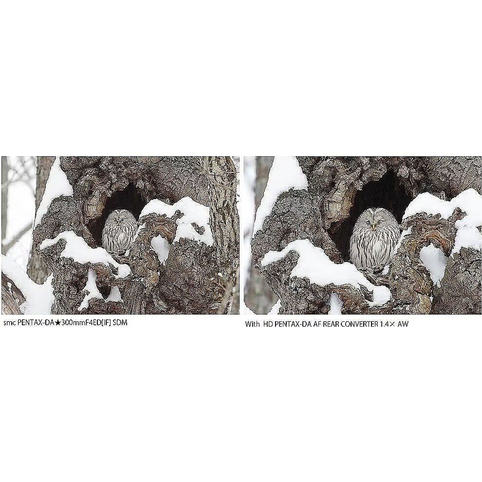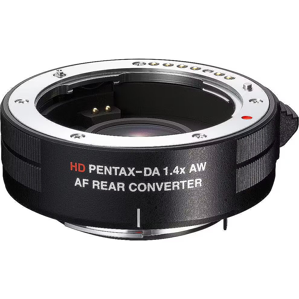 description_en - 1.4 magnification factor increase lens versatility State-of-the-Art HD (High Definition) technology Pentax-original weather sealing The HD PENTAX-DA AF 1.4X AW Rear Converter closes the gap between the photographer and subject by giving a 40% increase in focal length to the attached lens. This new converter assures premium image quality by incorporating the latest in PENTAX optics technology including the PENTAX original HD coating, weather sealing and compatibility with body and lens based focusing systems. The HD PENTAX-DA AF 1.4X AW rear converter offers an extremely compact tool to enhance the versatility of telephoto lenses. 1.4× magnification in a compact form factor The HD PENTAX-DA AF 1.4× AW rear converter offers a 40% increase in focal length when mounted between the body and lens, yet has an extremely small form factor. Measuring only 20 millimeters (approximately 0.8 inches) long, its compact, lightweight design allows the user to more easily reach out to distant subjects. The minimum focusing distance of the lens is retained, allowing for the capture of larger, more detailed images in close-up situations. *When this rear converter is mounted, the lens maximum aperture will be smaller by 1 stop. Weather Resistant The HD PENTAX-DA AF 1.4× AW rear converter features weather-resistant construction to prevent the intrusion of water and moisture into the lens barrel when paired with weather sealed PENTAX DSLR bodies and lenses. The user is assured of greater durability and reliability when shooting in rain or mist, as well as at locations subject to a spray or splash. PENTAX HD Lens Coating Treated with HD coating, a PENTAX-exclusive multi-layer lens coating, enjoy higher light transmittance and lower reflectance than conventional multi-layer coatings. This means it produces sharp, clear images free of flare and ghost images, even under such adverse lighting conditions as backlight. Autofocus and aperture compatibility Auto Focus and Auto Aperture functionality is retained when using the HD PENTAX-DA AF 1.4× AW rear converter. The rear converter works flawlessly with both the camera-driven AF system and the lens-driven AF system (such as the SDM- and DC- series lenses).** **The camera’s firmware must be updated to the latest version before using the autofocus function. Compatible camera bodies are: K-3, K-50, K-500, K-30, K-5 II, K-5 II s, K-5, K-01, K-7, and K-r. Autofocus is possible with a PENTAX lens having maximum aperture of f/4 or brighter.