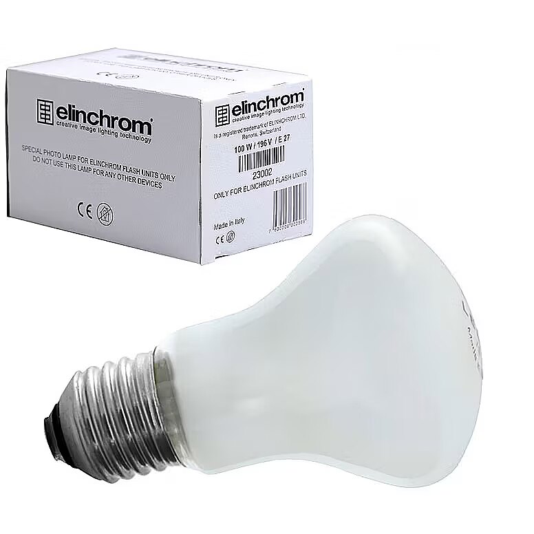 description_en - The Elinchrom modeling lamp 100W (230V) is an E27 base bulb with an average life of 500 hours and a color temperature of approximately 3200K. It is compatible with Elinchrom D-Lite series flash heads.