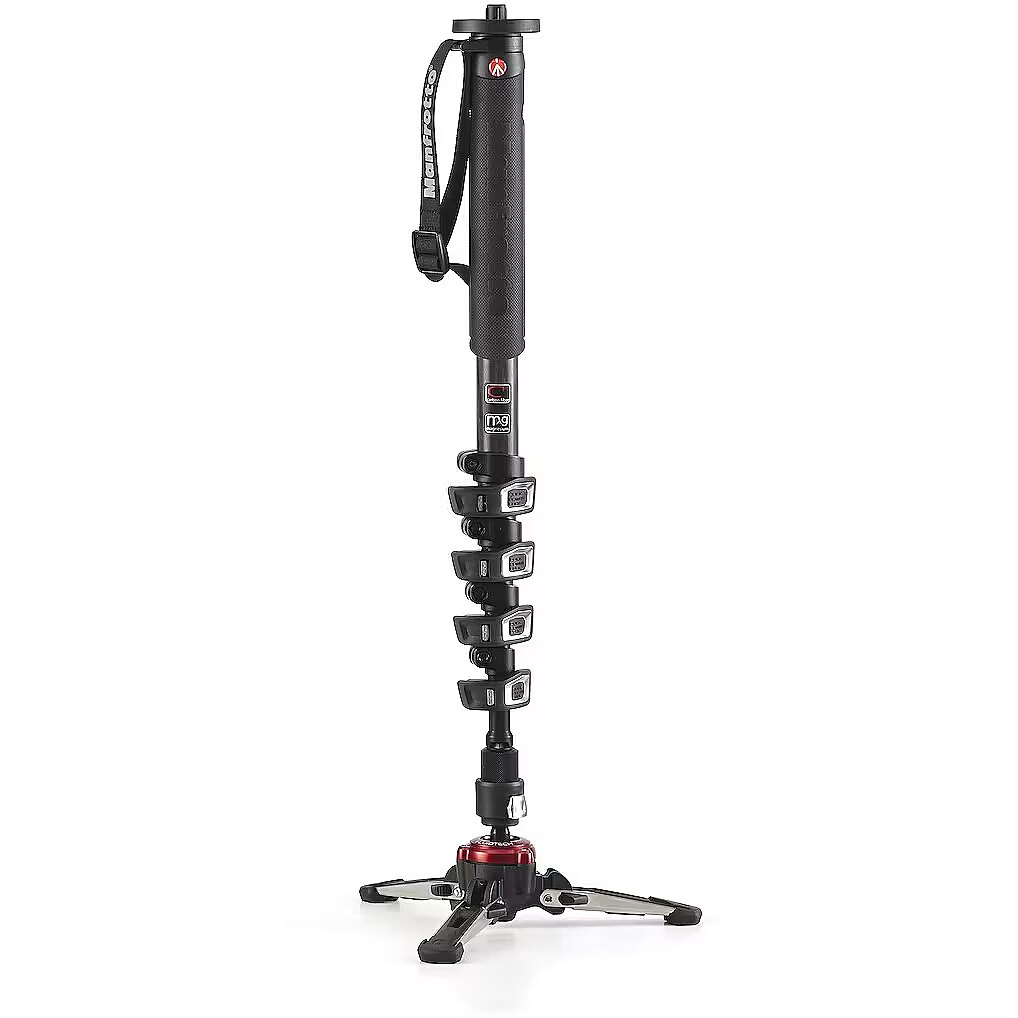 description_en - The new XPRO Monopod Carbon Fibre 5-section is a new professional full fluid video monopod made to satisfy videographers who need a highly portable, high-performance solution they can easily carry when they are travelling. The MVMXPROC5 is the lightest Manfrotto carbon fiber monopod in the new range to mount the full fluid base (MVMXPROBASE) with the latest FLUIDTECH technology. The FLUIDTECH video base enables the ultimate shooting smoothness on pan, tilt and swivel for an expanded range of perspectives. The three retractable feet make it extremely portable when folded and allow the monopod to be easily carried everywhere. Its 100% carbon fibre tubes ensure the monopod’s high rigidity while better absorbing micro movements to ensure excellent image quality. Combined with the Quick Power Lock (QPL), which strongly locks the lever thanks to an easy ergonomic mechanism, this eliminates unwanted jerky movements. Thanks to the newly designed leg warmer, which provides exceptional grip, and the dual 1/4'' - 3/8'' photo and camcorder fixing screw, this new generation of video monopods is now handier, faster and even more versatile in the field.