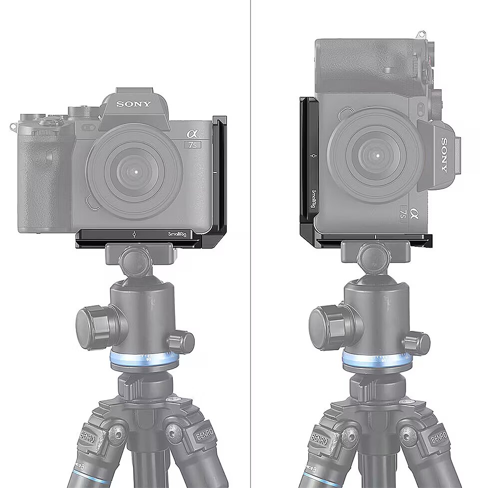 description_en - SmallRig L-Bracket for Sony a7S III (3003) attaches to the camera using a 1/4"-20 screw, with anti-twist design and rubber pad preventing wiggles or scratches. Both the side plate and base plate are Arca compatible, allowing a quick switch between horizontal and vertical orientation shooting. The L-Bracket does not block buttons, ports, LCD screen, or battery switches of the camera. The whole L-Bracket can extend to left by 20mm if you need more room for tethering or cable release. It also comes with 1/4"-20 accessory threads allowing mount of accessories, such as SmallRig Cable Clamp 1822, or SmallRig Cold Shoe Mount BUC2736. A flat-head screwdriver is kept on the base plate for easy access. Form-fitting L-Bracket for Sony A7S III. Arca Compatible Base Plate and Side Plate. Unobstructed LCD Screen and Control Access. 1/4"-20 Accessory Threads for Added Mounting Flexibility. Built-in Flat Screwdriver.
