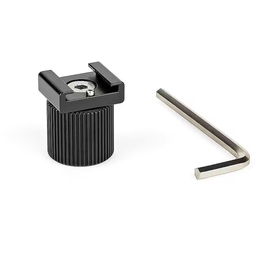 description_en - Transform any 1/4''-20 socket or screw into a cold shoe. High-quality machined aluminum cold shoe adapter for attaching accessories such as mic or LED lights. Attach via 1/4”-20 attachment to mount cold shoe accessories Constructed of machined aluminum and stainless steel Includes female 1/4”-20 adapter mount and Allen wrench