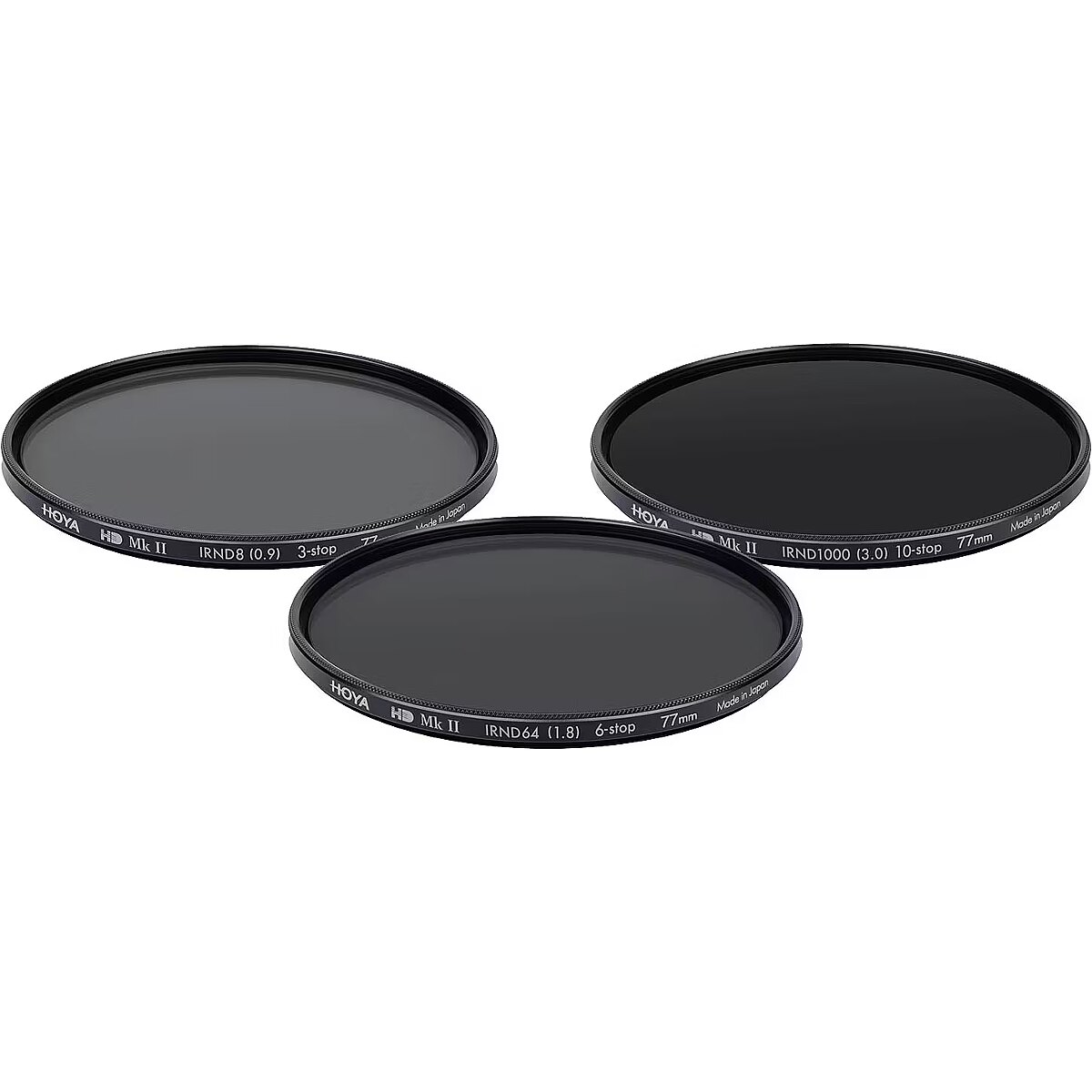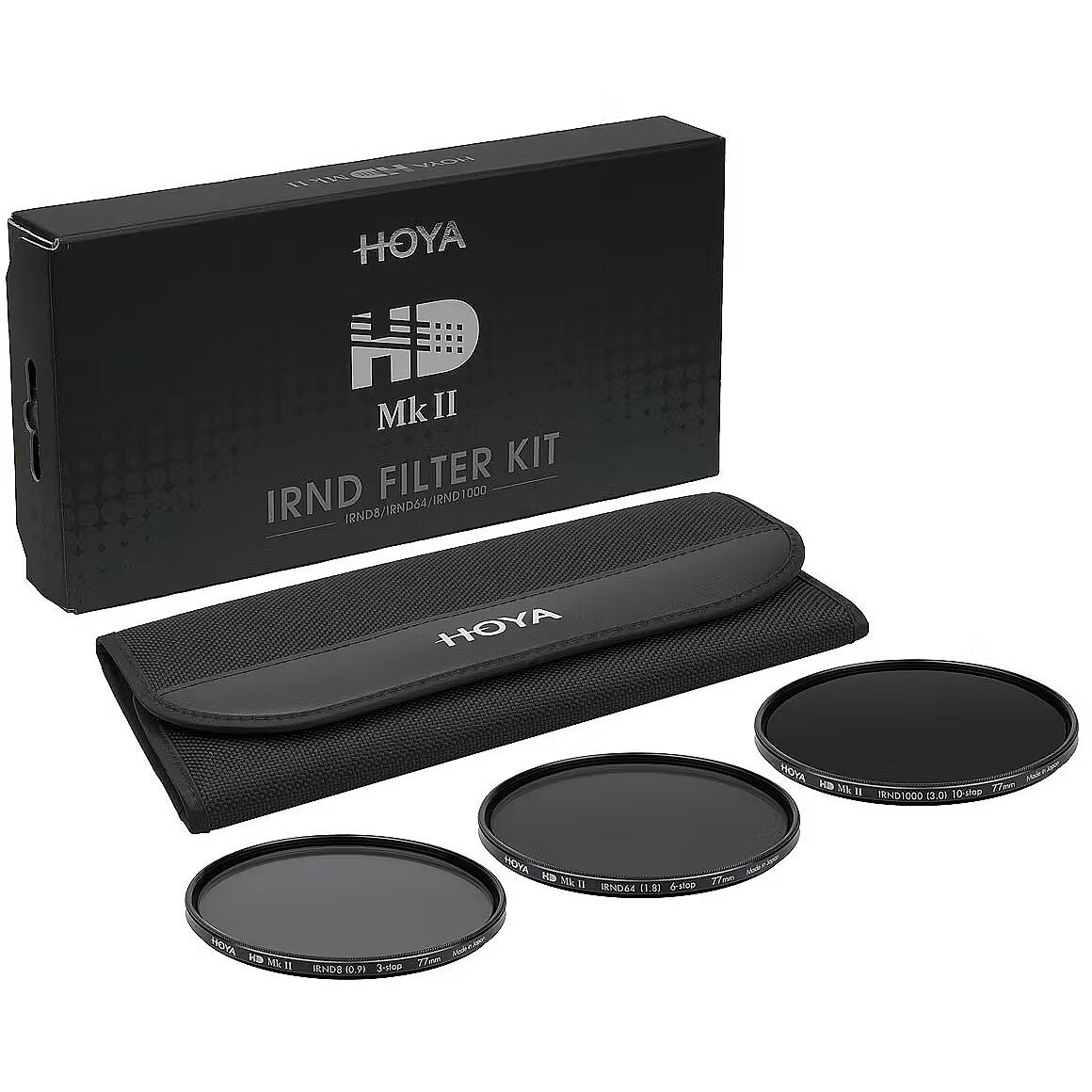description_en - The HOYA HD Mk II IRND FILTER KIT includes the three premium IRND filters HD Mk II IRND 8, 64 and 1000. As these densities allow photographers to create all possible effects of ND filters, such as motion blur, flowing effect and greater creative control over exposure, it is the perfect all-around kit that contains all essential and most popular ND filters for photography. That makes the kit perfect for both amateur and professional photographers who want to fully make use of ND filters in all kinds of situations just as much as those who are not sure which ND filter is best for their vision and hence want to try out several densities. Includes HD Mk II IRND 8, 64 and 1000 filters and carry pouch that can hold up to four round-type filters. ACCU-ND technology for an even light reduction throughout the visible and IR light spectrum to avoid any unintended color shifts due to IR pollution. Anti-reflection multi-coating. Water- and oil repellent properties for easy and stress-free cleaning. Low-profile lightweight aluminum frame for minimum chance of vignetting. HD MK II IRND8 for creating a beautiful blurred background