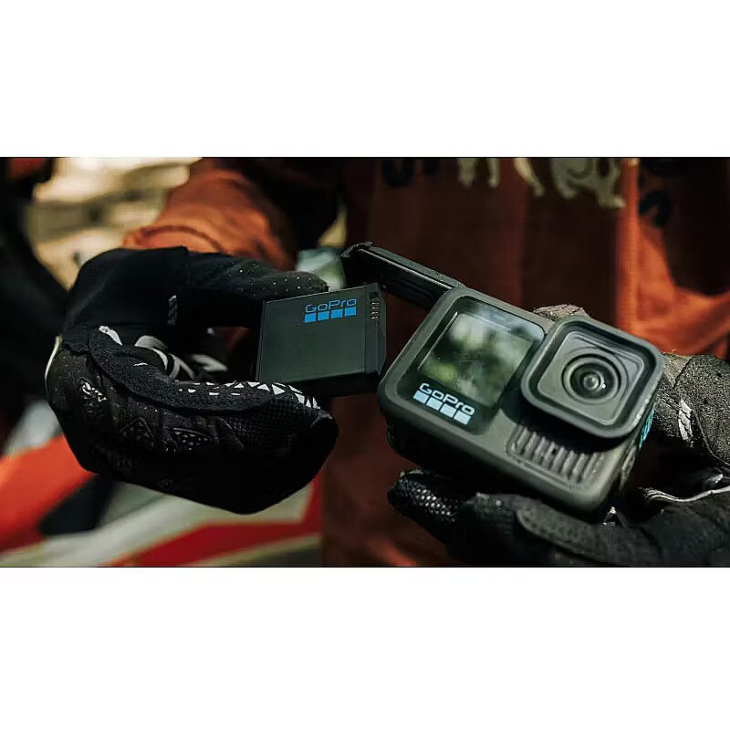 HERO13 Black is compatible with the HB-Series Lenses that let you instantly set up your camera for a variety of speciality shots. The Ultra-Wide Lens Mod is the ultimate POV lens for action-packed scenes and epic landscapes. The Macro Lens Mod captures close-up shots in stunning detail. Neutral Density Filters add motion blur to your footage and let you adjust the lighting in your shots with professional results. Try the Anamorphic Lens Mod for pro-level cinematic shots. HERO13 Black even detects when a lens or filter is attached and automatically adjusts its settings accordingly. Best-in-Class 5.3K Video 5.3K video delivers breathtaking image quality with 91% more resolution than 4K and an incredible 665% more than 1080p. HERO13 Black captures the action with crisp detail and exacting image quality so any shot with any lens will look amazing. 5.3K video also lets you grab stunning photos up to 24.7 MP from your footage using the GoPro Quik app. Burst Slo-Mo HERO13 Black features GoPro slowest slo-mo ever with the ability to record video clips with the action slowed down to 13x normal speed. You’ll also be able to record short 4× slo-mo clips using GoPro highest 5.3K resolution video to catch epic details that you’d never be able to see with the naked eye. Rugged + Waterproof to 10 m HERO13 Black was built to take a beating. It’s ready to capture the fun on any adventure whether you’re tearing through mud, snow or water (down to 10 m). A water-repelling lens cover even helps eliminate lens flare and other artefacts to help keep your photos and videos crystal clear. Award-Winning HyperSmooth 6.0 Stabilisation HyperSmooth 6.0 continues to set the bar for in-camera video stabilisation — giving you impossibly smooth footage no matter how rough it gets. HyperSmooth AutoBoost ensures that you’re getting the widest stabilised footage possible by seamlessly adjusting the shot based on your speed and movement. Built-In 360° Horizon Lock HERO13 Black’s Linear + Horizon Lock digital lens keeps the horizon steady, straight and smooth even if your camera rotates a full 360° during capture. Combined with HyperSmooth video stabilisation, Horizon Lock gives your footage the super-smooth look of professional productions. Extended Runtimes in All Conditions Spend more time recording and less time charging. A higher-capacity 1900-mAh Enduro battery gives you longer runtimes in all conditions, from hot to freezing and everything in between. You’ll get 1.5 hours of continuous recording at 4K30 or 5.3K30, plus over 2.5 hours of continuous recording at 1080p30. More Power Options HERO13 Black has more power options than any GoPro before it. The Contacto Waterproof Magnetic Power Cable and Door Kit features a magnetic link that gives you a quick and simple way to connect to an external power source. The Dual Battery Charger + Integrated Powerbank features its own internal battery that can conveniently charge the two included Enduro batteries anywhere. It can also be plugged directly into your camera for extralong recording sessions. More Mounting Flexibility HERO13 Black features three mounting options that make it more versatile than ever. The new Magnetic Latch Mount makes it faster and easier to swap your camera from one mounting setup to another. Use the built-in mounting fingers to securely attach your camera to GoPro mounts when you need durable mounting in rough conditions. The 1/4-20 mounting threads can be used with tripods and other standard camera accessories. Easy Hands-Free Capture HERO13 Black is packed with features that make it easy to get incredible footage when your hands are busy with handlebars, ski poles, tow ropes and more. It’s compact and light enough to wear comfortably using one of the many available GoPro body mounts. Once mounted, you can use voice commands for the ultimate in hands-free control. Mounts for Every Activity Bike mounts, surfboard mounts, car mounts, pole mounts, grips, extension poles and more. GoPro has mounts that’ll help you get any shot you can dream up. Capture your adventures from dramatic new angles and see them as you’ve never seen them before or record point-of-view footage and relive amazing moments exactly as you saw them. HLG-HDR Video HERO13 Black takes its best-in-class image quality to the next level with the option to record in Hybrid Log Gamma (HLG), a standard HDR format that the pros use to capture 5.3K and 4K video in the 10-bit and Rec. 2100 colour space. This advanced feature requires a compatible display and media player for playback. Users can still capture video using HDR without HLG for viewing on standard displays and media players. Widescreen, Vertical + Full-Screen Capture HERO13 Black’s powerful 1/1.9” image sensor lets you do more. Choose widescreen capture (16:9 aspect ratio) for full-screen playback on a TV or vertical videos (9:16 aspect ratio) for social media posting. For maximum versatility, the full-frame option (8:7 aspect ratio) captures a 156° field of view that lets you crop in to create widescreen and vertical shots later. 10-Bit Colour + Log Encoding HERO13 Black lets you choose between capturing standard video at 10-bit or Log encoding at 10-bit with GP-Log. Capable of displaying over 1 billion colours, 10-bit colour delivers enhanced colour depth, smoother gradations and more realism in your videos. Advanced users can use GP-Log to get more detail in their footage while making necessary image corrections in postproduction (a lookup table/LUT is provided). Timecode Sync Advanced users with more than one HERO13 Black can sync them with the exact same timecode to make multi-camera editing a lot easier. It works with Final Cut Pro, Adobe Premiere and other editing software to further streamline post-production. 27-MP Photos + 24.7-MP Frame Grabs HERO13 Black takes 27-MP Single, Interval, Burst and Night photos that let you capture standard, fast action and low-light shots. You can also grab stunnin