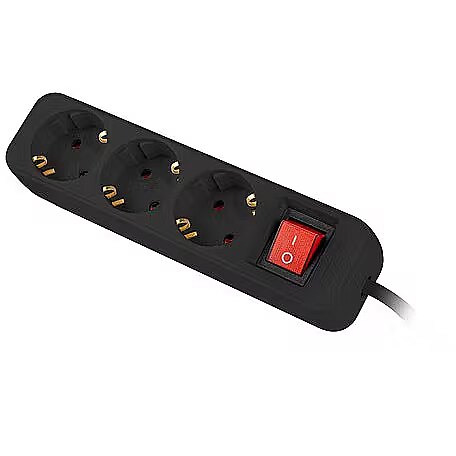 ShortDescription - Listwa przedłużacz Lanberg | 5 gniazd Schuko | 3.0m | czarna | kabel wykonany z pełnej miedzi | z wyłącznikiem