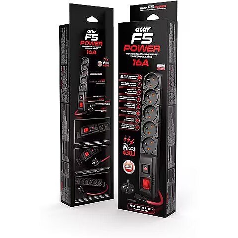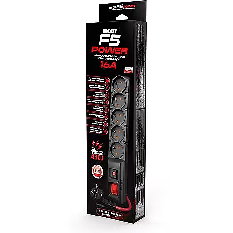 ShortDescription - Listwa zabezpieczająca Acar F5 Power 5 gniazd 3.0m czarna 16A
