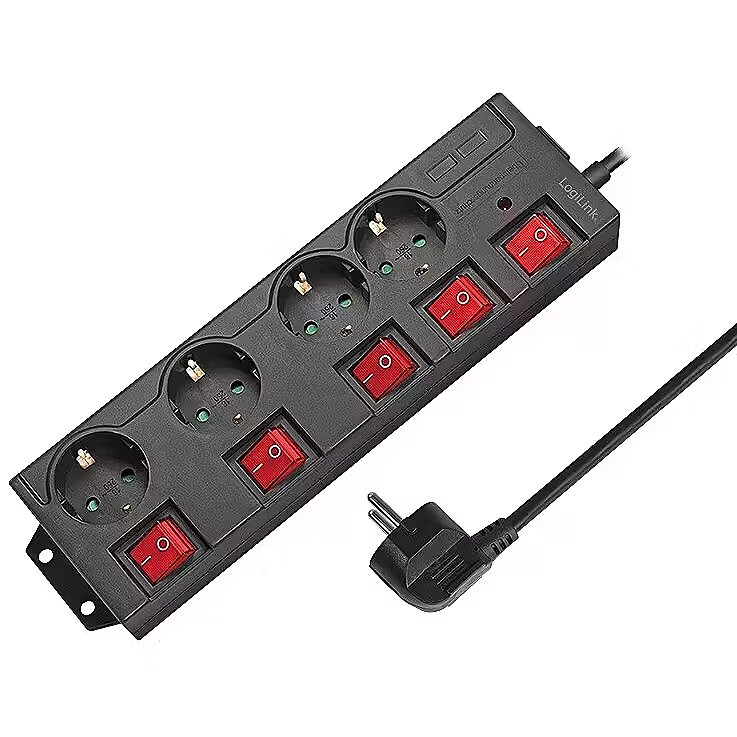 Dane techniczne: Dodatkowe informacje - 4 gniazda typu Schuko|Z 5 podświetlanymi przełącznikami ON/OFF|Wyloty w pozycji 90°|Gniazda z przesłoną bezpieczeństwa|IP20 dla ochrony przed kontaktem z palcami lub podobnymi przedmiotami|Każde gniazdo można indywidualnie przełączać; dodatkowy wyłącznik