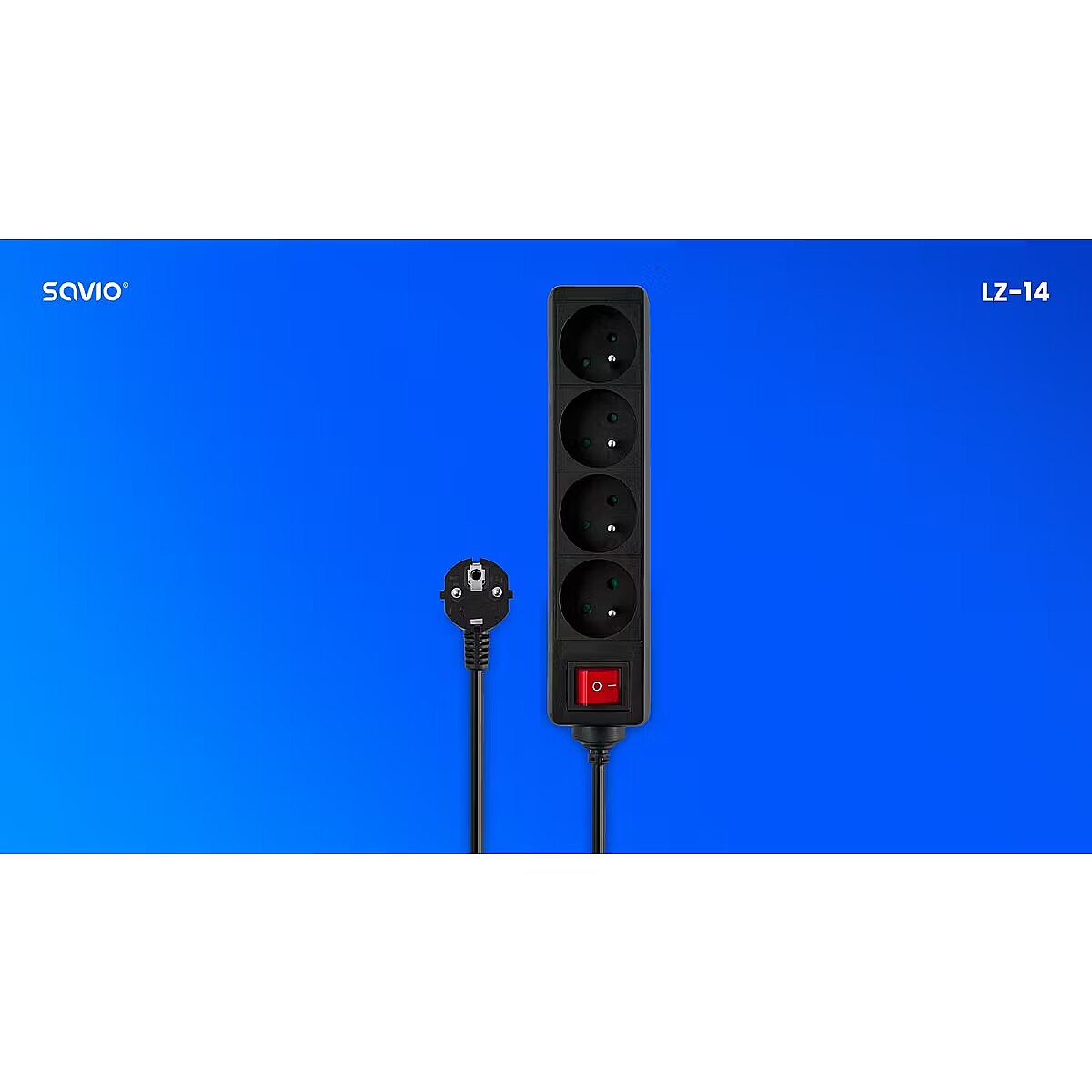 Description - Safety in use The SAVIO LZ-14 4-socket power strip 3m is an indispensable accessory for every household. Thanks to this power strip, you can connect many electrical devices without worrying about overloading the electrical system. Non-flammable casing The LZ-14 power strip includes one of the most important features you should pay attention to when choosing this type of product. The Savio power strip has a non-flammable casing, so it can withstand temperatures of up to 650°C. This makes your devices safe in any situation. Power strip for 4 devices Our extension cable is the perfect solution for people who need a stable and safe power supply. It is a very versatile product that can be used both at home and in the office. With the ability to connect up to 4 devices at the same time, you can freely use multiple appliances without worrying about overloading your installation. The built-in on/off switch allows you to easily stop or resume power to the connected devices.