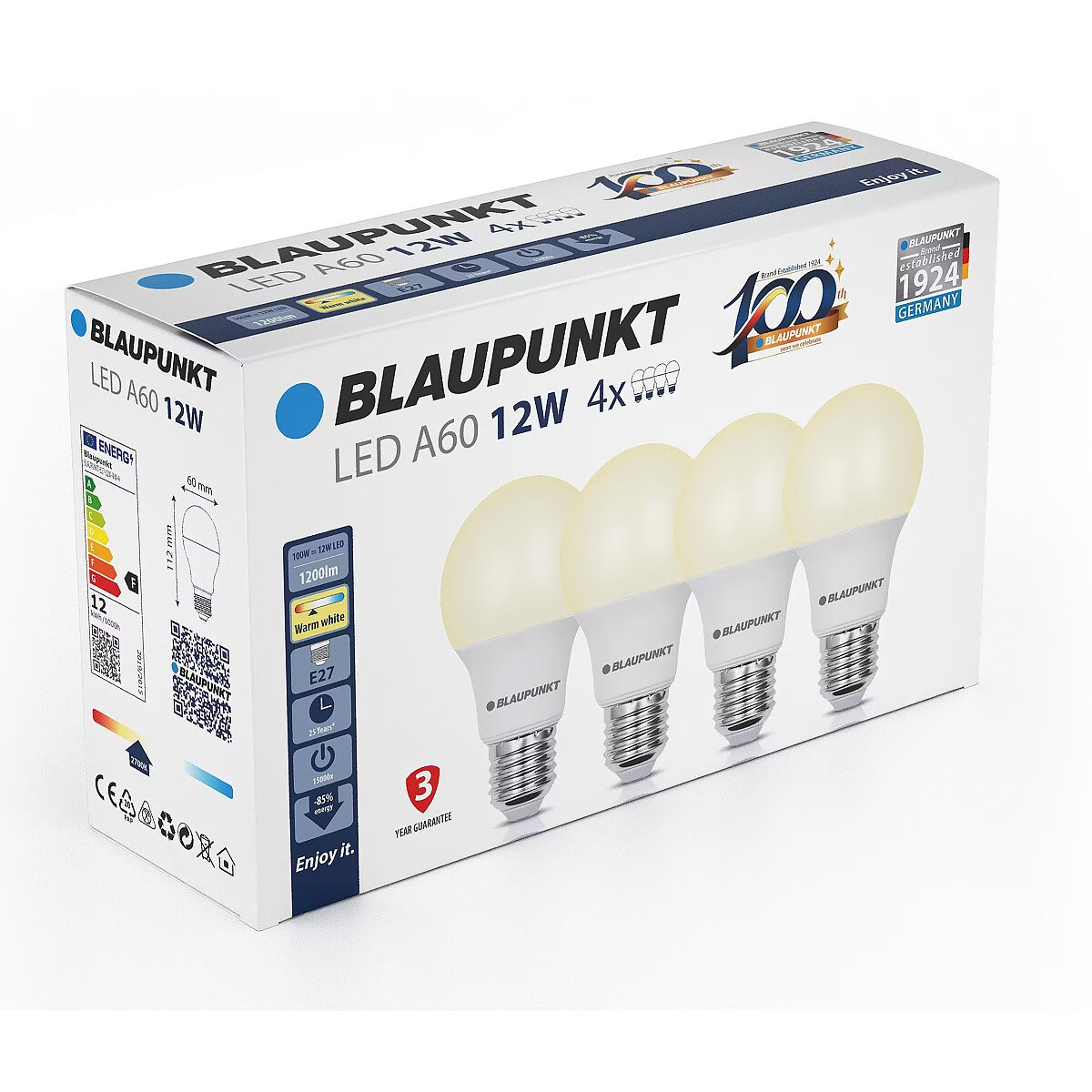 Blaupunkt LED lamp E27 A60 1200lm 12W 2700K 4pcs