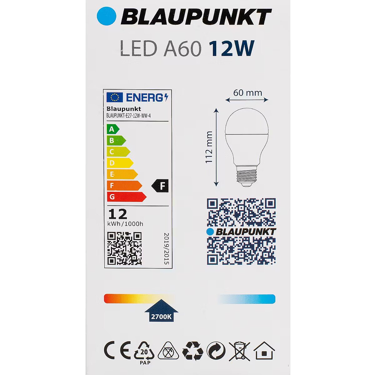 ID: 1100144 Product code: BLAUPUNKT-E27-12W-WW-4