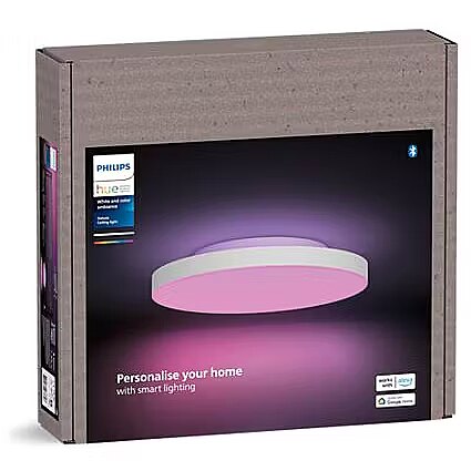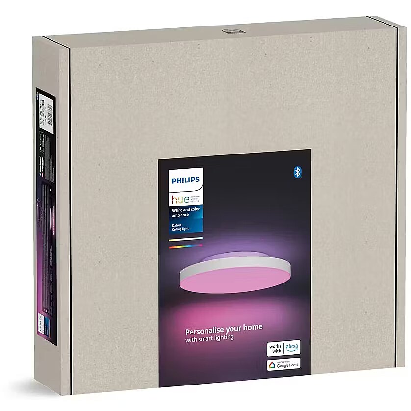 LongSummaryDescription - Philips Hue White and colour ambience Datura Ceiling Light Small. Type: Smart ceiling light, Interface: Wi-Fi/Bluetooth, Product colour: White. Energy efficiency class: G, Input voltage: 220–240, AC input voltage: 220–240 . Weight: 3.15 kg, Diameter: 57.4 cm. Package type: Box, Package width: 104 mm, Package depth: 480 mm. Quantity per pack: 1 pc(s)
