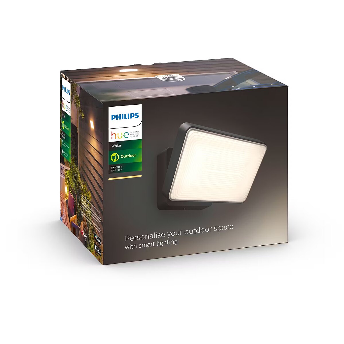 ShortSummaryDescription - Philips Hue White Welcome Outdoor Floodlight, Smart wall light, Black, LED, Metal, Non-changeable bulb(s), Warm white