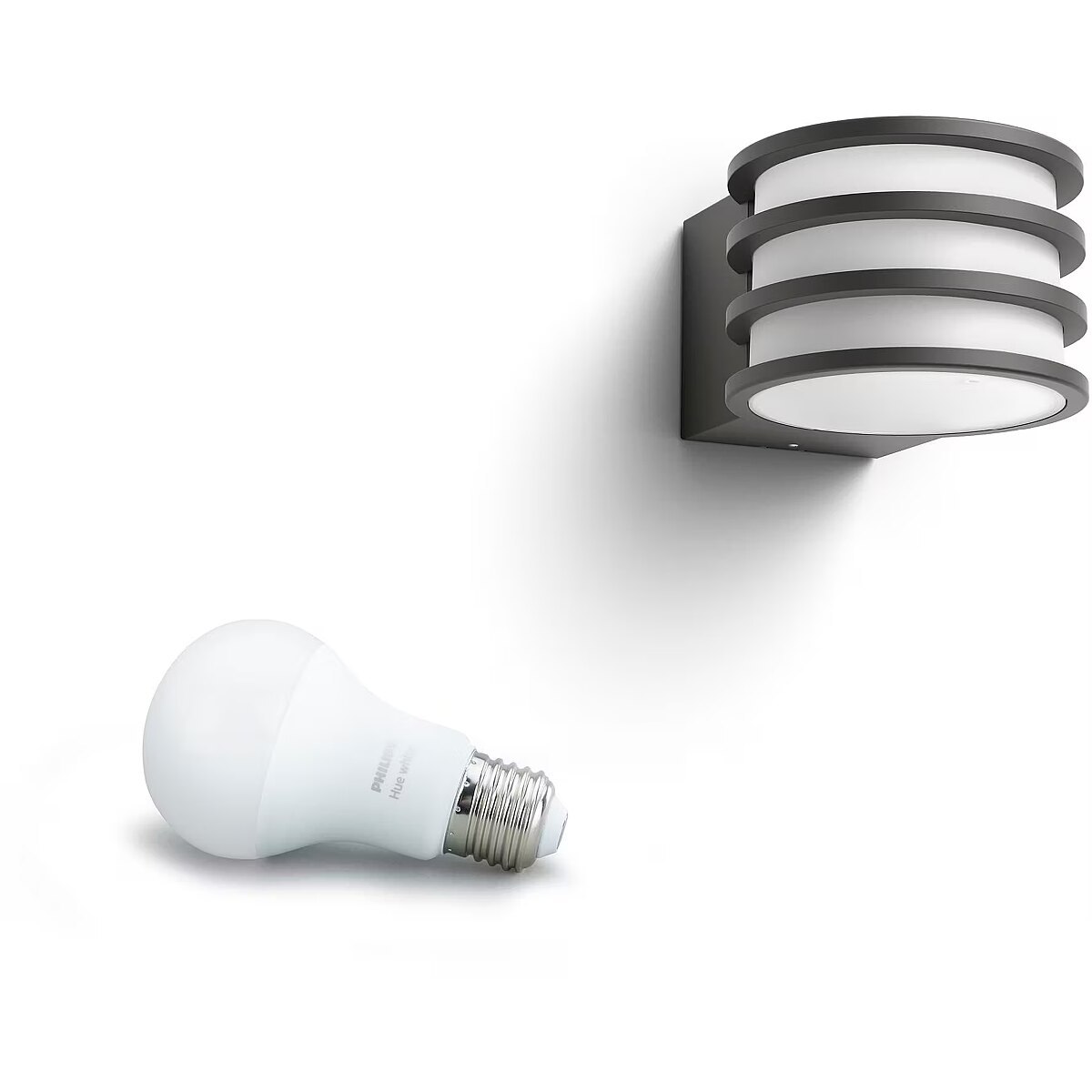 ShortSummaryDescription - Philips Hue White Lucca Outdoor wall light, Smart wall light, Anthracite, LED, Aluminium, E27, Warm white