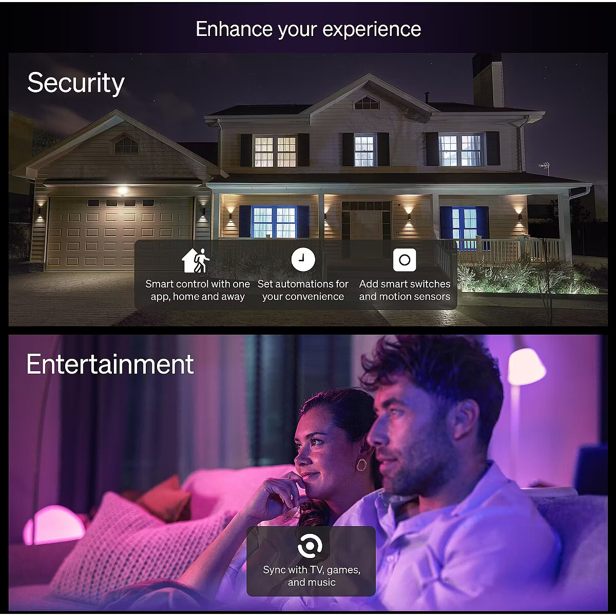 Choose from millions of colors and shades of white light – from warm to cool – to match your mood or activity. Use preset lighting scenes or design your own combinations.