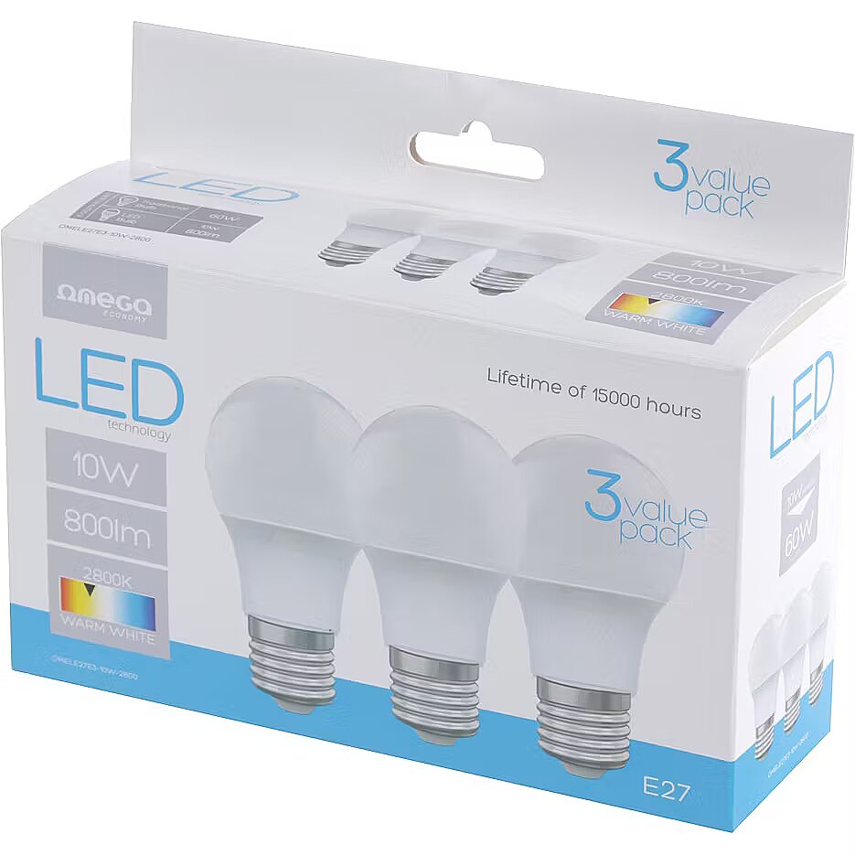 name_en - Omega LED lamp E27 10W 4200K 3pcs (45054)