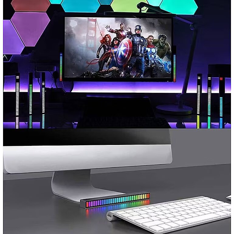 description_ru - LED MUSIC LIGHT Управление звуком Креативная светодиодная музыкальная подсветка, управляемая звуком музыки, эквалайзер RGB создает прекрасную атмосферу в комнате, в машине или где угодно.