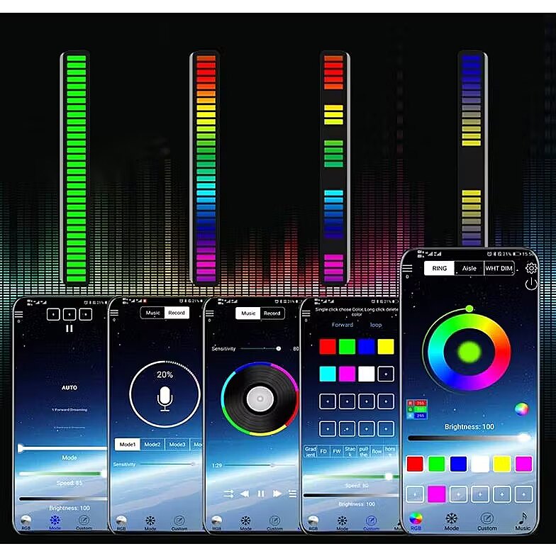Могут быть крутые изменения цвета и атмосферы в ритме музыки. Цвета следуют ритму музыки, позволяя погрузиться в радостную атмосферу. Автомобили, телевизоры, письменные столы, спальни, компьютеры и вечеринки — хорошая среда для установки.