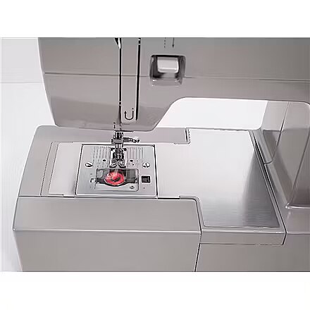 Technical details > Other features - Stainless Steel Bed Plate. Top Drop-in Bobbin. Snap-on Presser Feet. Extra-High Presser Foot Lifter.
