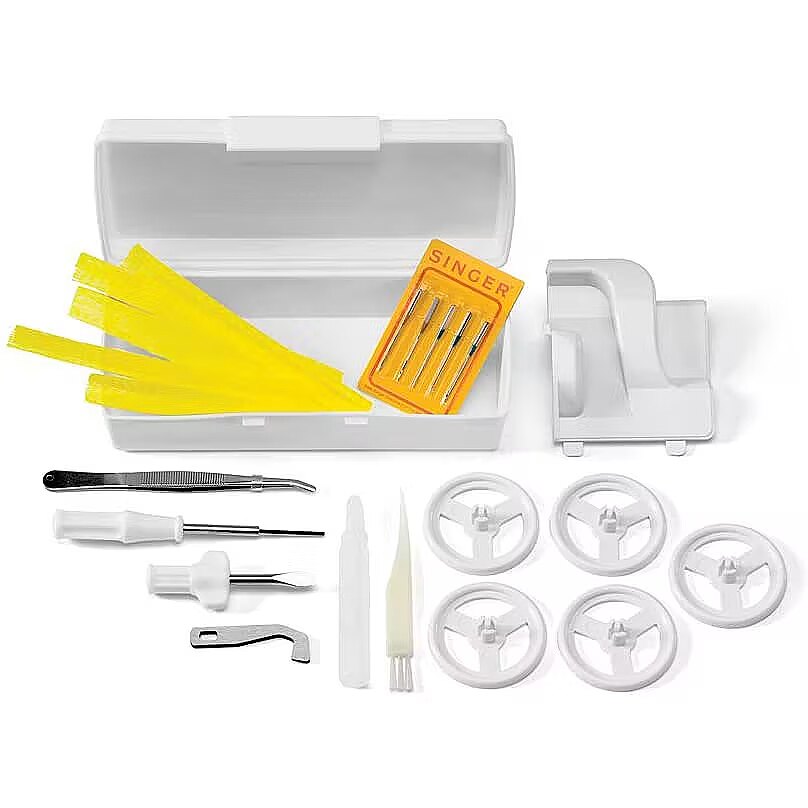 Packaging content - Sewing machine accessories included - Button sewing foot