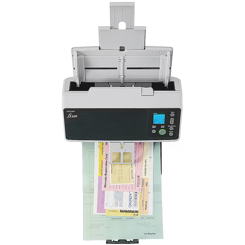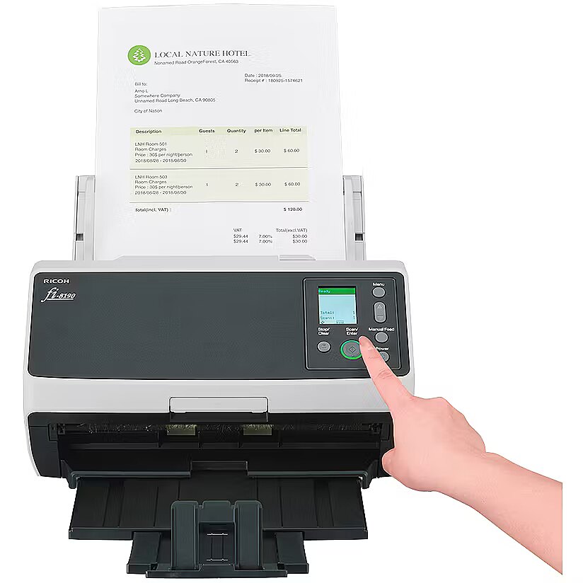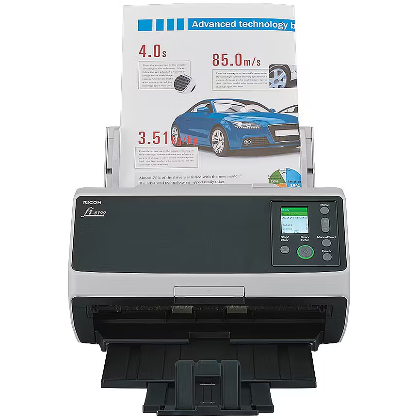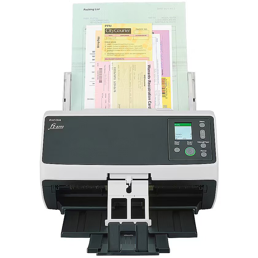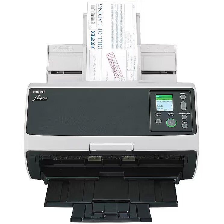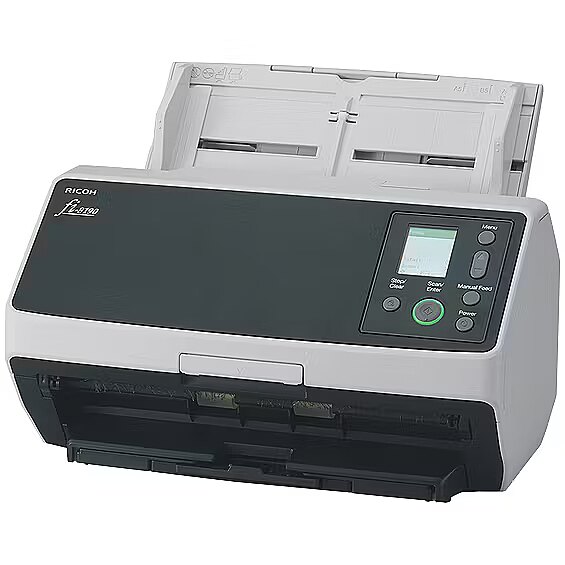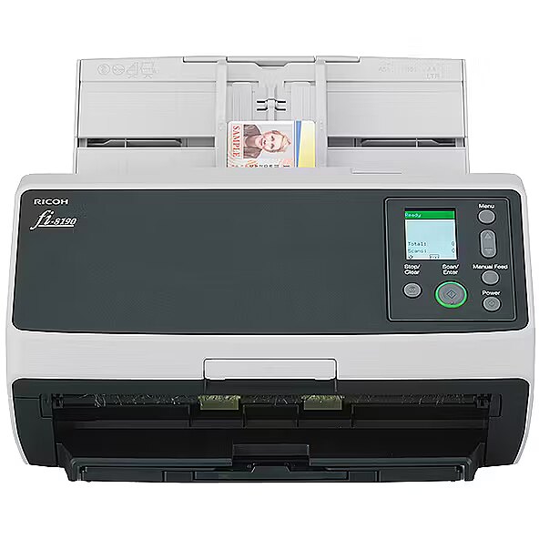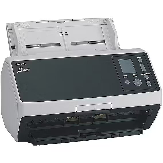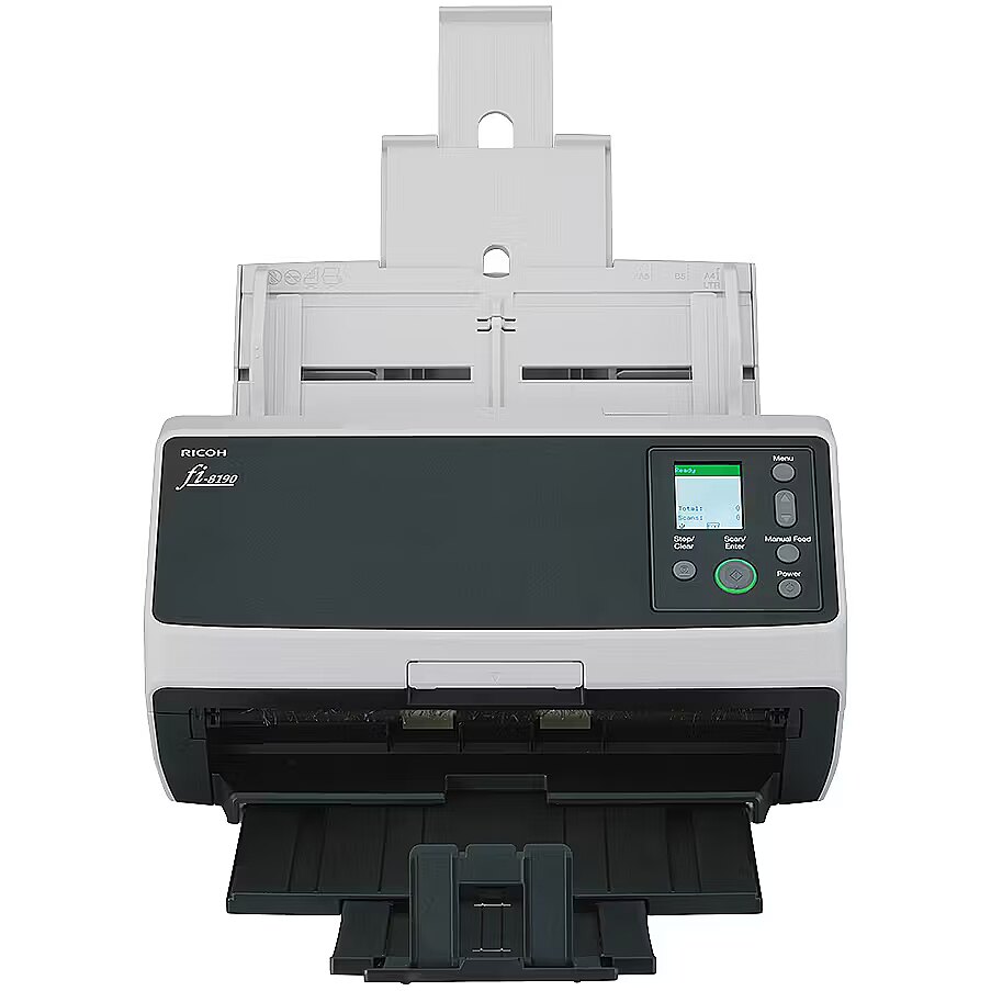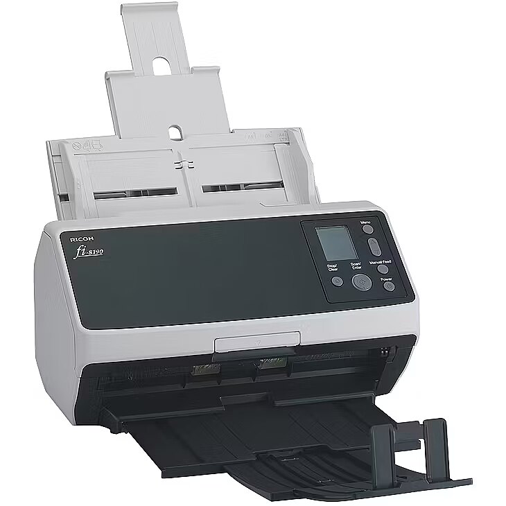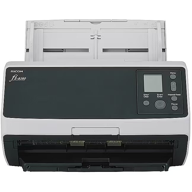 LongSummaryDescription - Ricoh fi-8190. Maximum scan size: 216 x 355.6 mm, Optical scanning resolution: 600 x 600 DPI, ADF scan speed (b/w, A4): 90 ppm. Scanner type: ADF + Manual feed scanner, Product colour: Black, Grey, Control type: Buttons. Sensor type: Dual CIS, Light source: LED, Scan file formats: JPEG, PDF, PNG, TIFF. Auto document feeder (ADF) input capacity: 100 sheets. Maximum ISO A-series paper size: A4, Scanning media types supported: Business Card, Post Card(JPN), ISO A-series sizes (A0...A9): A4, A5, A6