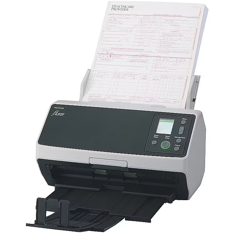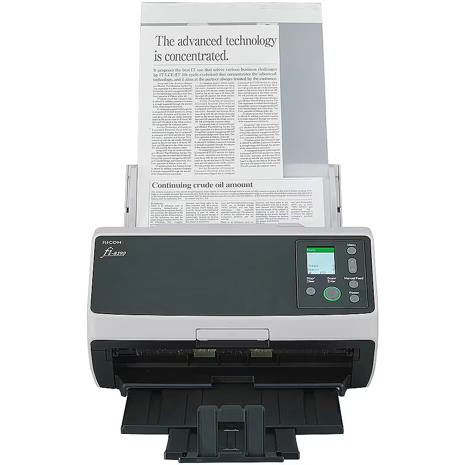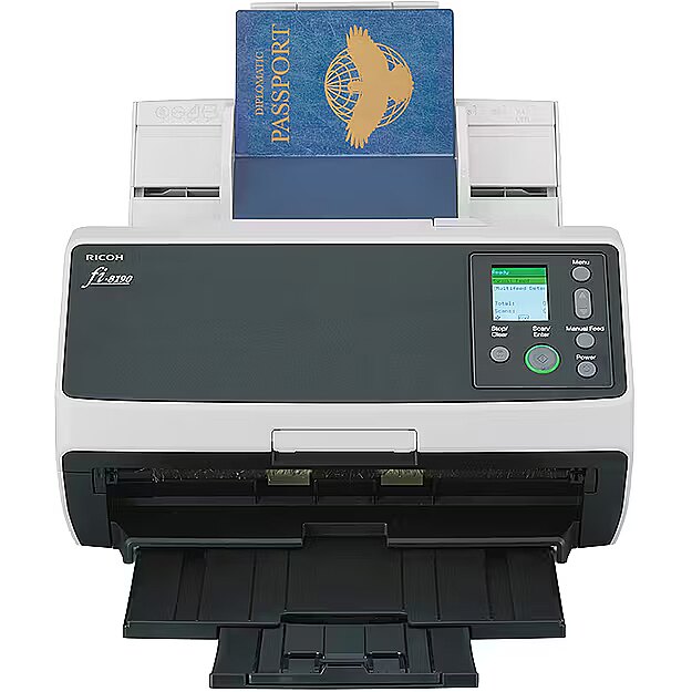 LongDesc - The evolution of the market’s leading image scanners, the fi-8190 delivers state-of-the-art technology designed to address today’s business challenges and drive sustainable value creation.Our ground-breaking Clear Image Capture produces image quality that surpasses other available technologies, resulting in industry-leading OCR accuracy rates. PaperStream IP software optimises output files for faster, lower cost operations. Plus, the fi-8190 can easily capture the widest range of document types – from 20gsm to 465gsm, cards or booklets up to 7mm thick.Driven by ǂ32 new patents, the innovations we have made to the world’s most trusted scanning solution deliver a product you can rely on, now and into the future. The result is reduced power consumption and state-of-the-art Automatic Separation Control that consistently delivers the perfect feed. Meanwhile, Intelligent Sonic Paper Protection (ISoP) and the world’s-first Image Monitoring technology combine for the safe capture and protection of passports, booklets or mixed batches even when labels or photos are attached.A 100 sheet ADF and 90ppm duplex scanning speed combined with many marginal process gains mean the fi-8190 delivers real-world productivity without equal. Overscan Control and enhanced multifeed detection prevent stoppages from misfeeds, jams or skews, while post-scan filing time is also reduced. And with no need to prepare different document types in separate batches, a fast start-up time and centralised remote scanner monitoring and management, users benefit from uninterrupted operation, maximum uptime and an unsurpassed user experience.Long-term strategic advantage is also made a reality. Organisational intelligence is enhanced by the scalable, automated capture of richer, more diverse data sets, making the fi-8190 the perfect partner to support the evolution of the digital transformation journey, from the early to advanced stages.Market defining performanceClear Image CaptureClear Image Capture (CIC) is a breakthrough proprietary optical technology innovation debuting in the fi-8190. True image rendering and colour shift prevention deliver industry leading OCR accuracy rates and image quality that surpasses the capabilities of standard CIS or CCD alone. And, as a more efficient optical technology, power consumption for every scan is reduced. CIC also enables capture of the widest range of document types from 20gsm-465gsm – including A4 envelopes, cards, passports, or booklets up to 7mm thick.Tech you can trustAutomatic Separation ControlOur ǂpatented Automatic Separation Control delivers the perfect feed so organisations can scan larger volumes and mixed batches of documents with confidence. By sensing their weight and adapting and adjusting torque automatically, mis-feed and mid-scan interruptions are eliminated. This guarantees feed stability for different document formats and saves users from wasting time sorting different document types into individual batches. It also enables the 100 sheet ADF capacity and higher speeds for more efficient, high-throughput workgroup scanning.Industry leading paper protectionThe fi-8190 protects documents from damage using innovative new technology. Patentedǂ Image Monitoring identifies overly skewed documents in real time and halts the scanning process before they can be damaged. ISoP (excluding fi-8150, fi-8250 models) will do the same if it detects any abnormal feed sounds. While Lag Detection ensures documents are feeding through at the expected speed.Specialist passport capture capabilityThe patentedǂ feeding mechanism ensures safe capture of passports without a carrier sheet, while MRZ recognition ensures consistently accurate capture of personal data.Real-world productivity without equalEnhanced multi-feed detectionUnnecessary stoppages in the scanning process are eliminated by automatically recognising and ignoring cards, stickers, and small defined attachments. This patentedǂ technology is an evolution beyond standard multi-feed detection which stops when anything beyond a single sheet is identified during feed through.High speed, high throughputFast boot time and up to 90ppm duplex mean the fi-8190 delivers a highly efficient scanning process for the ultimate in workgroup productivity. Incorporating USB 3.2 and gigabit LAN connectivity also makes rapid file transfer possible.Overscan ControlAutomatically adjust scanning area to prevent image loss on skewed documents, removing the need to ever have to rescan slightly skewed documents. Three precisely positioned sensors detect document edges and adjust the scanning area accordingly to fit the document, even if it has been inserted at a skewed angle. Users can scan safe in the knowledge that the entire document will be scanned every time and no part of the image will ever be lost.Urethane rollersUrethane rollers are resistant to absorption of oil from NCR paper, unlike EPDM rollers which can swell and affect feed torque. Maintaining their integrity avoids misfeed and jams for consistent feed performance.Stacker supportErgonomically designed stacker support neatly stacks scanned documents for faster, easier post-scan filing.ǂpatents pending