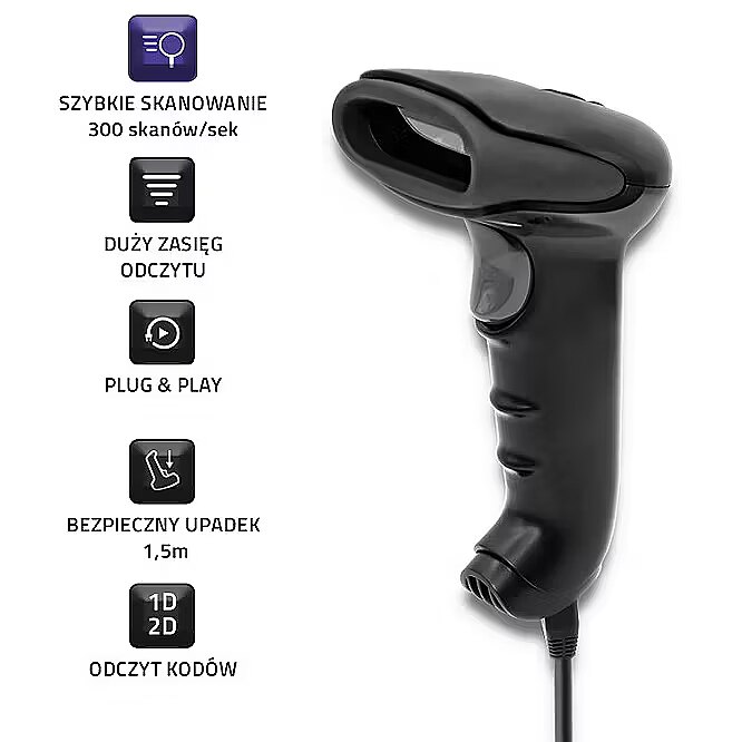productName - Qoltec 50868 Wireless Laser Scanner 1D | 2D | Black