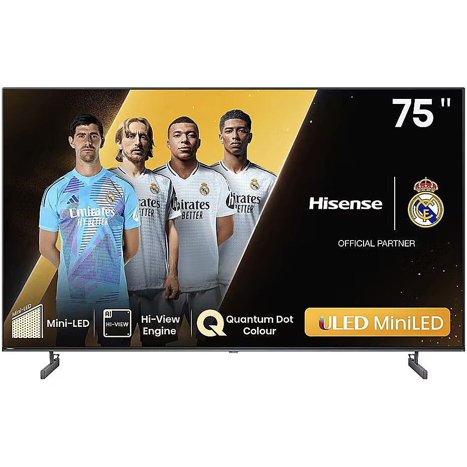 LongSummaryDescription - Hisense 75U6NQ. Display diagonal: 190.5 cm (75"), Display resolution: 3840 x 2160 pixels, HD type: 4K Ultra HD, Display technology: ULED, Screen shape: Flat, LED backlighting type: Mini LED. Smart TV. Display brightness: 500 cd/m², Response time: 8 ms, Contrast ratio (typical): 2500:1, Native aspect ratio: 16:9. Digital signal format system: DVB-C, DVB-S, DVB-S2, DVB-T, DVB-T2. Wi-Fi, Ethernet LAN. Product colour: Grey