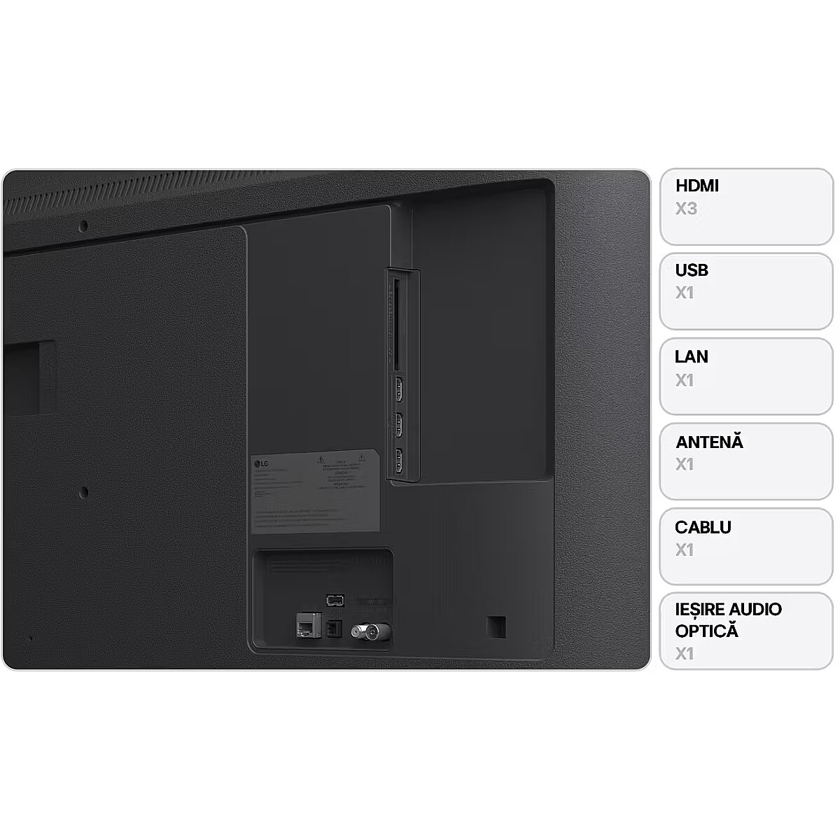 Summary - LG 43UA74003LB. Display diagonal: 109.2 cm (43"), Display resolution: 3840 x 2160 pixels, HD type: 4K Ultra HD, Display technology: LED, Screen shape: Flat, LED backlighting type: Direct-LED. Smart TV. Native aspect ratio: 16:9. Digital signal format system: DVB-C, DVB-S, DVB-S2, DVB-T2. Wi-Fi, Ethernet LAN. Product colour: Black