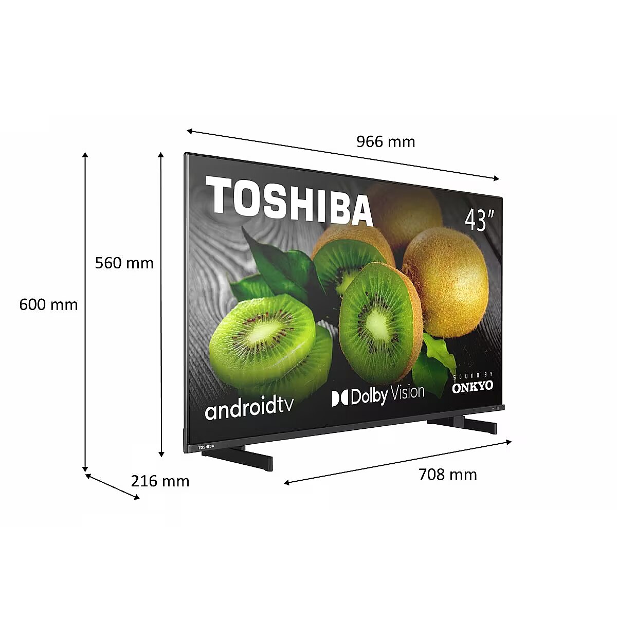 Description - 43UA5D63DG Imagination come to life. Discover the true power of exceptional picture quality, improved contrast and more harmonious and natural on-screen movement. Thanks to the TRU Picture Engine processor, you can enjoy vivid images whatever you're projecting - including live TV and Full HD and HD recordings. Marked with the 4K HDR Ultra HD logo, all our 4K HDR TVs support and faithfully display 4K HDR content in its full glory. Working with Onkyo, Toshiba creates TVs that deliver sound of the highest order. Our TVs are equipped with Onkyo speakers, allowing them to deliver even clearer sound, whether it's music or dialogue. Tuned by Onkyo engineers, the speakers are created to deliver realistic sound that can be heard clearly from anywhere in the room. Google Play is your unlimited entertainment. It brings together all your favourite entertainment and helps you discover it in new ways, anytime, anywhere. Stream your favourite entertainment from your phone, tablet or laptop to your TV. Discover the Netflix button on your remote to move from one adventure to the next. Satisfy your appetite for quality entertainment in the comfort of your home. Enjoy countless movies and series, as well as award-winning Prime Originals productions.