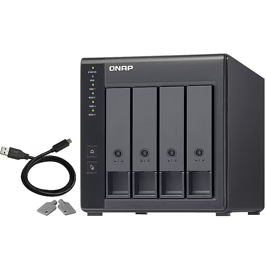 LongDesc - The TR-004 USB 3.2 Gen 1 RAID expansion enclosure allows you to expand the capacity of your QNAP NAS and PC. The TR-004 can also be utilized as a DAS (Direct-attached Storage) device, allowing you to directly access its content just by connecting it via USB. The TR-004 features four 3.5-inch SATA drive bays with multiple RAID configuration options and USB 3.2 Gen 1 Type-C connectivity to bring you a highly reliable and secure storage capacity expansion solution.Effective storage expansion with RAID SupportThe TR-004 is an ideal storage expansion solution for PCs, especially for laptops which lack the ability to install larger, higher-capacity drives. Featuring four 3.5-inch SATA drive bays and supporting RAID configuration, the TR-004 provides the ability to store a vast number of files and data and to ensure protection against potential drive failure.Supports various RAID levelsThe TR-004 supports a variety of RAID configurations. Depending on your requirements, you can switch between hardware- or software-controlled RAID modes. Move the DIP switches to corresponding positions for your ideal RAID mode: Individual, JBOD, RAID 0, RAID 1/10 or RAID 5. You can also configure the RAID settings from your QNAP NAS, or by using the QNAP External RAID Manager utility on your computer.Flexible storage configuration and managementCompared with other RAID enclosures, the TR-004 provides software-controlled configurations for greater management flexibility. Users can configure RAID and monitor disk health using Storage & Snapshots Manager on a QNAP NAS, or by using the QNAP External RAID Manager utility on their computer.Versatile usage scenarios to meet storage expansion needsThe TR-004 meets many storage expansion requirements for home and work use, including:Scenario 1: Expand the capacity of your NASThe TR-004 provides an alternative method for users to expand their NAS storage capacity. By connecting the TR-004 to their NAS and using the Storage & Snapshots Manager, users can easily configure and manage their storage expansion. The TR-004 supports a variety of QNAP NAS storage and file management functions, allowing users to build storage pools, find files with Qsirch and organize files with Qfiling.Use the TR-004 as an alternative to conventional NAS expansion enclosuresAs an external hardware RAID device, the TR-004 operates independently and does not require additional NAS system resources. When compared with the UX-500P expansion enclosure, the TR-004 uses less NAS system resources.Scenario 2: External storage for your NASInstead of using the TR-004 to expand the capacity of your QNAP NAS, you can use it as a complimentary storage unit for backing up or moving data. It also allows you to physically migrate huge data collections that would require significant network bandwidth. While connected to the NAS, you can monitor the health and status of the TR-004 by using the Storage & Snapshots Manager on the NAS.Scenario 3: Expand the storage space of your computerThe TR-004 can quickly add storage space to your computer. You can use the DIP switch to configure a hardware RAID mode or manage it by using the QNAP External RAID Manager utility. The health and status of the TR-004 can also be monitored by using the QNAP External RAID Manager utility.Scenario 4: Cross-platform file sharingFrom your NAS to Windows, Mac, and Linux computers, the TR-004 is compatible with a wide range of devices. This makes it ideal for quickly moving large files between different devices. The TR-004 is even compatible with devices that use the exFAT file system*, adding further convenience for accessing and sharing files from a wider range of devices.* To access devices that use the exFAT file system, users must purchase a separate exFAT driver license.