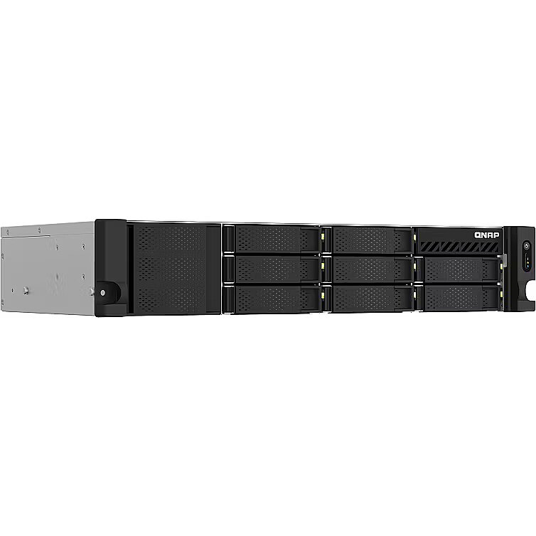 LongDesc - The compact 2U rackmount TS-873AeU combines an AMD Ryzen™ V1000 series V1500B quad-core/eight-thread 2.2 GHz processor and dual-2.5GbE connectivity in one chassis. Compared to its previous generation, the TS-873AeU is enhanced with two M.2 PCIe Gen3 x 1 ports for NVMe SSD caching or Edge TPU empowered AI image recognition. Cutting-edge hardware integrated with comprehensive software solutions makes the TS-873AeU the preeminent choice to tackle resource-demanding applications and tasks, such as virtual machines or multi-user intensive access. The space-efficient short depth design makes it easy to install in small media cabinets or places with a lot of cabling.2U Short depth design for up to 38% reduction in sizeThe 2U rackmount TS-873AeU has a short depth design of only 11.7 inches (297.4 mm), making it an excellent choice for smaller racks, wall-mount AV rack cabinets, and network rack cabinets. The space saved by the short depth design can be reserved for cabling or ventilation. The TS-873AeU is space-saving for flexible deployment and is especially suitable for multiple locations and applications including offices, audiovisual rooms, and security surveillance recording.Absolute performance with AMD Ryzen™ and up to 64GB RAMPowered by a 4-core/8-thread AMD Ryzen™ V1500B 2.2GHz processor with AES-NI encryption acceleration and up to 64GB DDR4 RAM (supports ECC RAM), the rackmount TS-873AeU delivers aggressive yet power-smart performance to drive resource-demanding business applications such as VDI, R&D, private cloud, and server virtualization.Upgrade to 2.5GbE networkingThe TS-873AeU comes with two 2.5GbE RJ45 LAN ports that allow you to use existing CAT5e cables to upgrade network speeds from 1 Gigabit to 2.5 Gigabit. 5GbE speeds can also be attained by using Port Trunking.Two M.2 PCIe Gen3 slots for SSD caching and accelerated AI-powered image recognitionThe 8-bay TS-873AeU is equipped with two M.2 PCIe Gen3 x 1 slots, enabling cache acceleration or SSD storage pools for improved performance, or Edge TPU for AI image recognition.NVMe 2 SSDs for cache acceleration or efficient tiered storageThe TS-873AeU supports SSD caching and features two M.2 slots that support M.2 PCIe NVMe SSDs with 2280 form factors (sold separately) for boosting overall NAS performance. Qtier™ technology can also be used to empower the TS-873AeU with auto tiering that helps continuously optimize storage efficiency across all installed storage devices.Accelerate AI–powered image recognition with TPUBy leveraging a Google Edge TPU to QNAP AI Core (the AI-powered engine for image recognition), the TS-873AeU can perform high-speed face and object recognition. Google Edge TPU enables QuMagie to quickly process thousands of photos with high-speed AI Image recognition and classification, and QVR Face to analyze real-time video for instant facial recognition.Abundant I/O capabilities with PCIe Gen3 expansionThe TS-873AeU has a PCIe Gen 3 x 8 slot that allows for installing various expansion cards for expanding application potential.Build an affordable Fibre Channel SAN environmentCommon Fibre Channel Storage Area Networks (SAN) devices are often costly. By installing QNAP dual-port 16Gb Fibre Channel expansion cards in the TS-873AeU, you have more budget-friendly options to add a NAS to a SAN environment. You can set a Fibre Channel Target using the iSCSI & Fibre Channel app. Moreover, the LUN Masking and Port Binding features provide an additional layer of data security.Comprehensive backup and disaster recovery solutionThe TS-873AeU supports various apps that cover all your backup needs. Practice safe IT habits by regularly backing up files and device content, allowing them to be easily restored when needed.PC/Laptop backupFor Windows®, install NetBak Replicator to back up your PC to QNAP NAS. In macOS®, just set up the built-in Time Machine® to secure your data.Remote backup for NASHybrid Backup Sync makes it easy to back up data from a TS-873AeU to another QNAP NAS or remote server to fulfill your 3-2-1 backup strategy.VM backupEnjoy license-free VMware® and Hyper-V VM backup with source-side incremental backup, global deduplication, and recovery compression.SaaS backupSafeguard enterprise cloud data by backing up/syncing files, emails, calendars, and contacts from Google™ Workspace and Microsoft® Office 365® to the NAS.Cloud backup for NASHybrid Backup Sync supports mainstream cloud storage for NAS data backup. For backup to object cloud storage, VJBOD Cloud is especially useful to reduce bandwidth usage and backup time.Multi-version snapshots mitigate ransomware threatsThe TS-873AeU supports block-based snapshots that record the state of the system at any time. It helps protect data, which can be restored back to a specific point of time, greatly helping in mitigating the threat of ransomware.Volume and LUN snapshotsTake snapshots in seconds and revert the entire volume/LUN back to a specific point in time to prevent loss of important data.Instantly restore snapshotsSnapshot content can be quickly restored to a local NAS, or restored on a folder/file basis to a local/remote NAS or cloud storage. You can also conveniently view and restore snapshots from the client side.Reliable, high-performance storage for virtualizationThe TS-873AeU supports block-based iSCSI LUN as a reliable, high-performance, and affordable storage solution for mainstream virtualization environments. It supports VMware® VAAI and Microsoft® ODX to increase performance by offloading server loading for ESXi server and Hyper-V respectively.Optimized performance for VMware Virtualization with iSERThe iSCSI Extensions for RDMA (iSER) protocol boosts the data transfer performance of VMware® ESXi storage and reduces the CPU load of the ESXi server. iSER support can be added to the TS-873AeU by installing a QNAP QXG-10G2SF-CX4 10GbE PCIe card, which uses the Mellanox® ConnectX-4 controller. iSER can provide a significa
