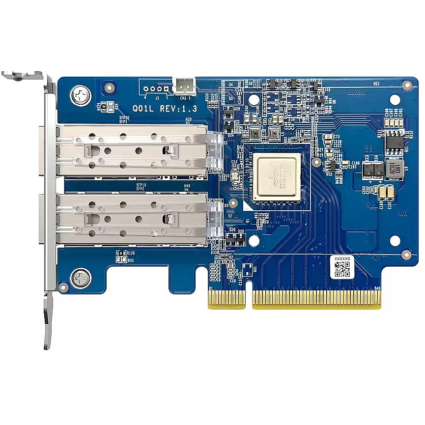 LongDesc - The QXG-10G2SF-NXE 10GbE network expansion card, featuring two 10GbE SFP+ ports (10G/1G), is energy-efficient and budget-friendly. It serves as an ideal solution for teams that need concurrent data access, for photographers/videographers seeking rapid and seamless data transmission capabilities, or for latency-sensitive virtualization applications.