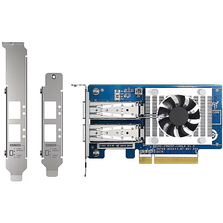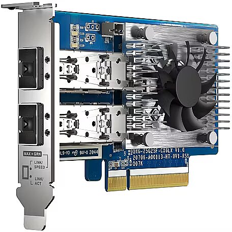 LongDesc - The QXG-25G2SF-CX6 features an NVIDIA Mellanox® ConnectX-6 Lx SmartNIC controller, supports PCIe Gen4 (backwards compatible with Gen3/ Gen2) and provides up to 25 Gbps transfer speeds. By using Port Trunking to combine multiple ports, up to 50GbE can be achieved for accelerating file sharing and intensive data transfer. With SR-IOV support, the QXG-25G2SF-CX6 greatly boosts network efficiency and is ideal for I/O-intensive and latency-sensitive virtualization applications and data centers.High-speed 25GbE NetworkingThe TS-h3088XU-RP supports 25GbE networking, and can be used with the QXG-25G2SF-CX6 to expand network connectivity. It can also be used with a 25GbE Switch to build a budget-friendly high-speed network environment.Supports Windows and Linux servers/workstationsBesides QNAP devices, the QXG-25G2SF-CX6 supports many platforms, including Windows 10, Windows Server, and Linux (driver required) which allows you to attain optimal business performance for a wider range of system applications and services. The higher bandwidth density with reduced links helps reduce cabling footprint and operational costs.