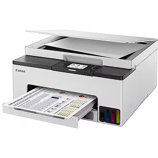 Ta niewielka drukarka typu 3 w 1 ze zbiornikiem MegaTank zapewnia komfort pracy w biurze domowym. Szybko drukuj duże ilości dokumentów biznesowych w wysokiej jakości, korzystając z przystępnych cenowo butelek z atramentem.