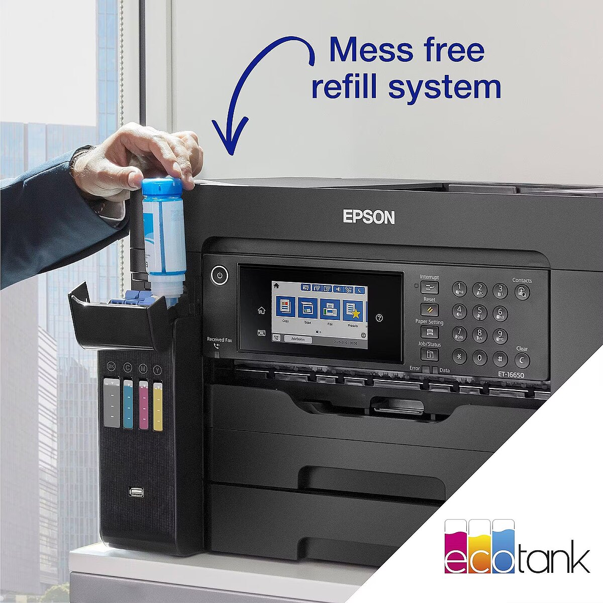 LongDesc - High performance printingA3+ print, scan, copy and fax with this fast, feature-rich EcoTank. It offers a low cost per page, 550-sheet tray capacity and 50-sheet ADF.This feature-rich EcoTank makes light of A3+ tasks, while offering a low cost per page. A3+ jobs can be accomplished quickly thanks to fast print and scan speeds, two 250-sheet front trays, a 50-sheet rear feed, and a 50-sheet A3 ADF. Print how you like with mobile printing, Ethernet and a 10.9cm LCD touchscreen with hard keys.Get more done in less timeGet the edge with this fast and efficient printer that can deliver a first page in as little as 5½ seconds. Coupled with fast double-sided printing, and a high speed Automatic Document Feeder, you’ll be able to speed through everyday tasks.Feature-rich A3 EcoTankThe ET-16600 is designed for A3 tasks with A3+ print, scan, copy and fax. It's easy to navigate the extensive range of features via the 10.9cm LCD touchscreen and hard keys.Keep on savingSave every time you print with this EcoTank that delivers an incredibly low cost per page. Unlike other printers, EcoTank features large ink tanks that you fill with low-cost ink bottles.End interuptionsMinimising refills, this EcoTank can print thousands of pages before needing more ink, while the two A3 paper trays offer a capacity of 500-sheets. Free yourself from manual page loading with a generous 50-sheet rear feed and A3 ADF.Print from almost anywhereIt's easy to print from mobiles, tablets and laptops using EcoTank. With Wi-Fi and Wi-Fi Direct, you can send documents to print from smart devices using the Epson iPrint app.Easy to use and reliableFilling the large front ink tanks is simple with the resealable, intuitive and drip-free ink bottles.The heat- free PrecisionCore printhead is renowned for its speed, quality, reliability and efficiency, and will last the lifetime of the printer.