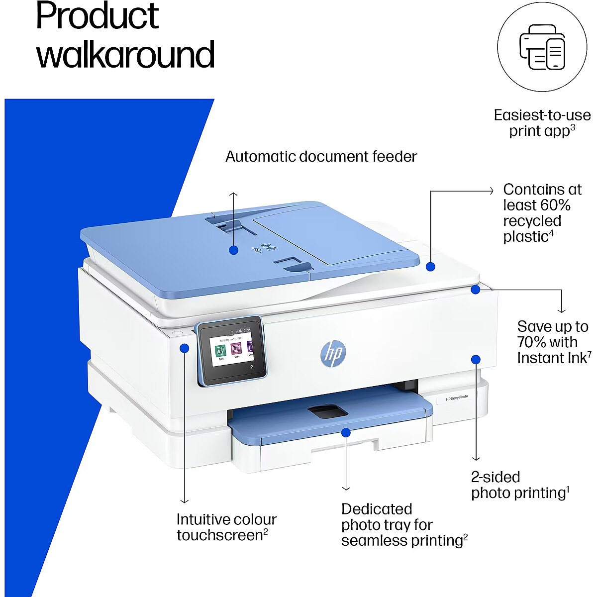 Smoothly transition from printing vibrant, high-quality photos to everyday documents. Easily move from printing photos to everyday documents without having to change paper. Print documents and photos that look just like they did on screen. Customize the backs of photos for personalized cards with HP automatic two-sided printing. HP's most reliable dual-band Wi-Fi with self-healing. Easily scan and copy multiple pages with the 35-sheet automatic document feeder.