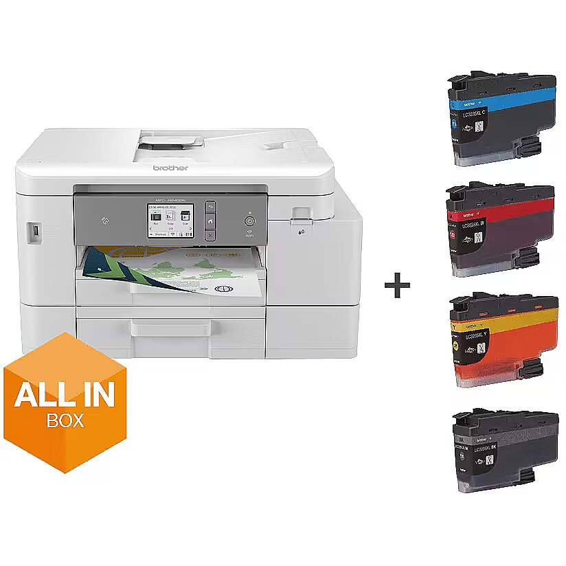 LongDesc - The MFC-J4540DWXL is a solidly built, yet sleek, feature rich multifunction device offering high-quality printing for less. Forming part of our All in Box range means when you buy this device, as well as a professional-standard multifunctional printer, it comes with in-box inks printing up to 6,000 page black and 5,000 page colour, which will significantly reduce your print costs, plus a 3-year warranty for added peace of mind. The combined savings in time and money makes this All in Box device a great choice for professional home printing.You don’t need to be sat at your desk, or even near the printer to use the MFC-J4540DWXL. With the range of connectivity options available, you can print anywhere in your house or office – and even from your mobile phone through the Wi-Fi, or NFC. By downloading the Brother Mobile Connect app you can access an array of features – from sending print jobs, to checking your ink levels and ordering replenishments when necessary.Increase your productivity levels with the extra paper tray providing 400 sheet paper input, plus with the 20 sheet ADF, you can leave your multipage document to scan while you focus on other tasks. Additionally, with the MFC-J4540DW’s simple to use 6.8cm LCD touchscreen, navigating tasks has never been easier.